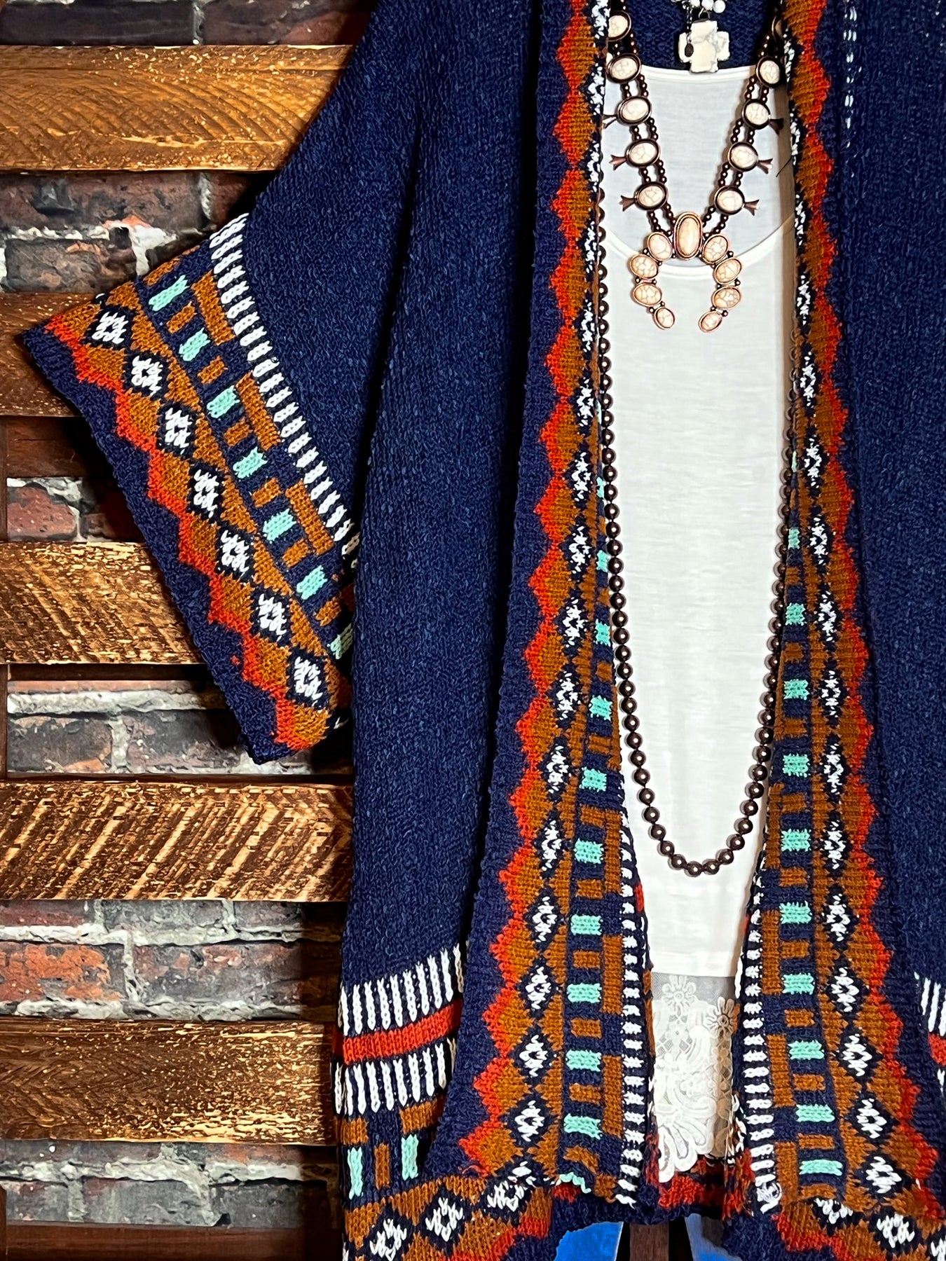 CANYON SOUL NAVY & MULTI-COLOR CARDIGAN SWEATER KIMONO