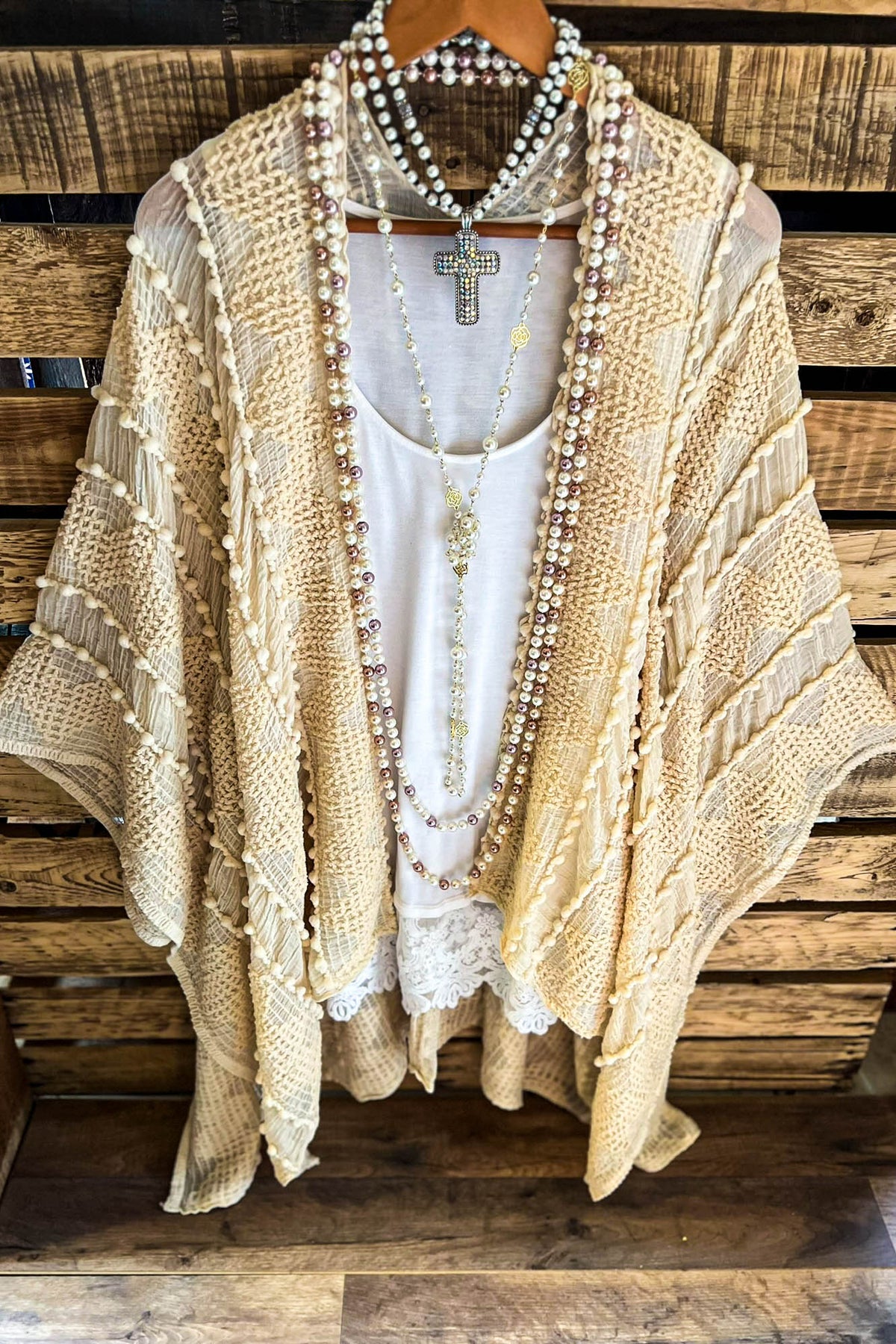GENUINE SOUL SOFT BOHO EMBELLISHED KIMONO IN BEIGE