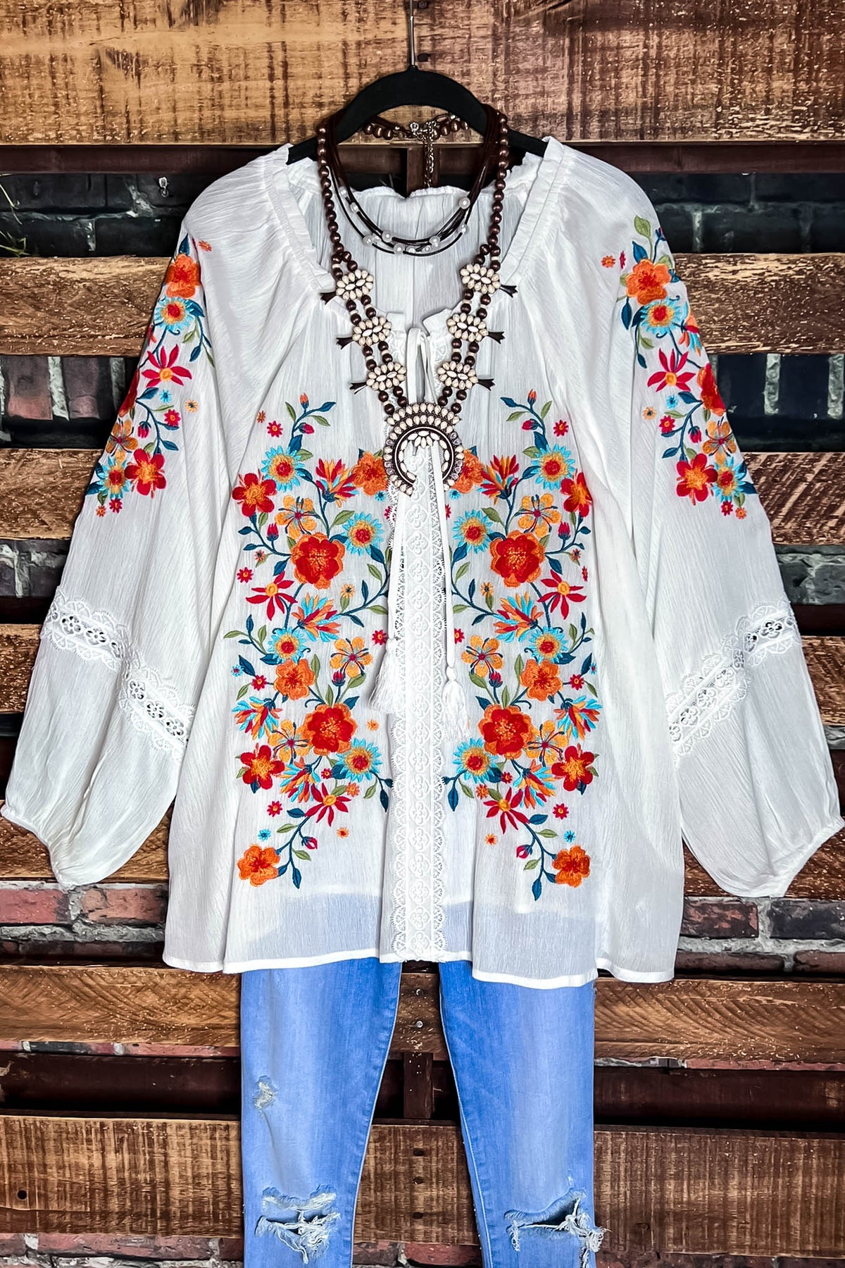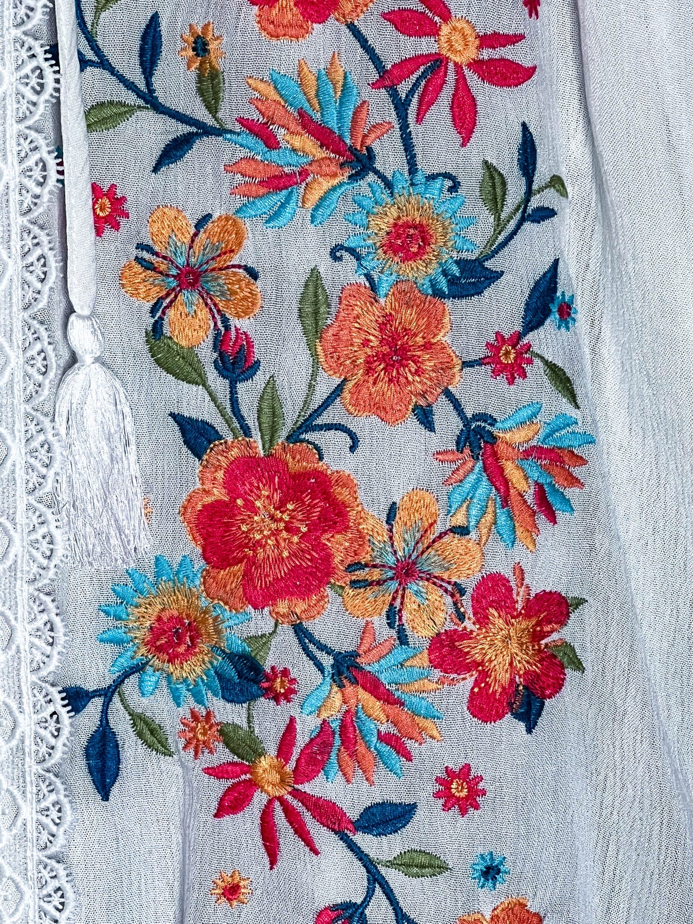 Give Me Good Times Boho Ivory Embroidered Floral Tunic