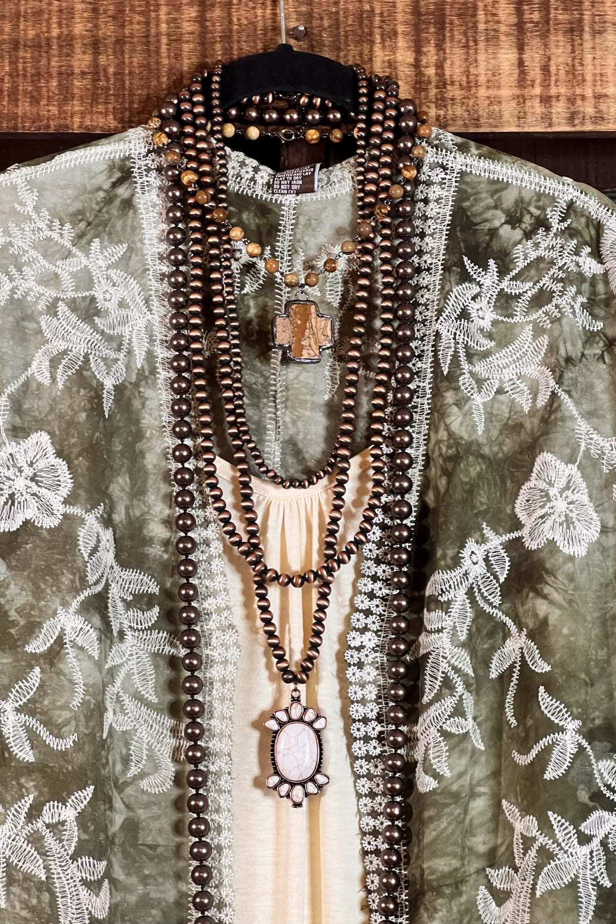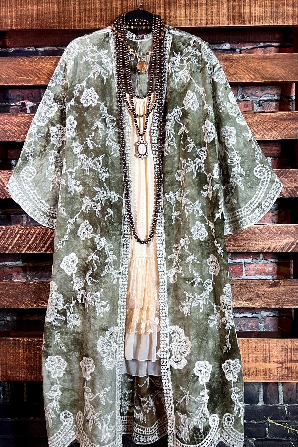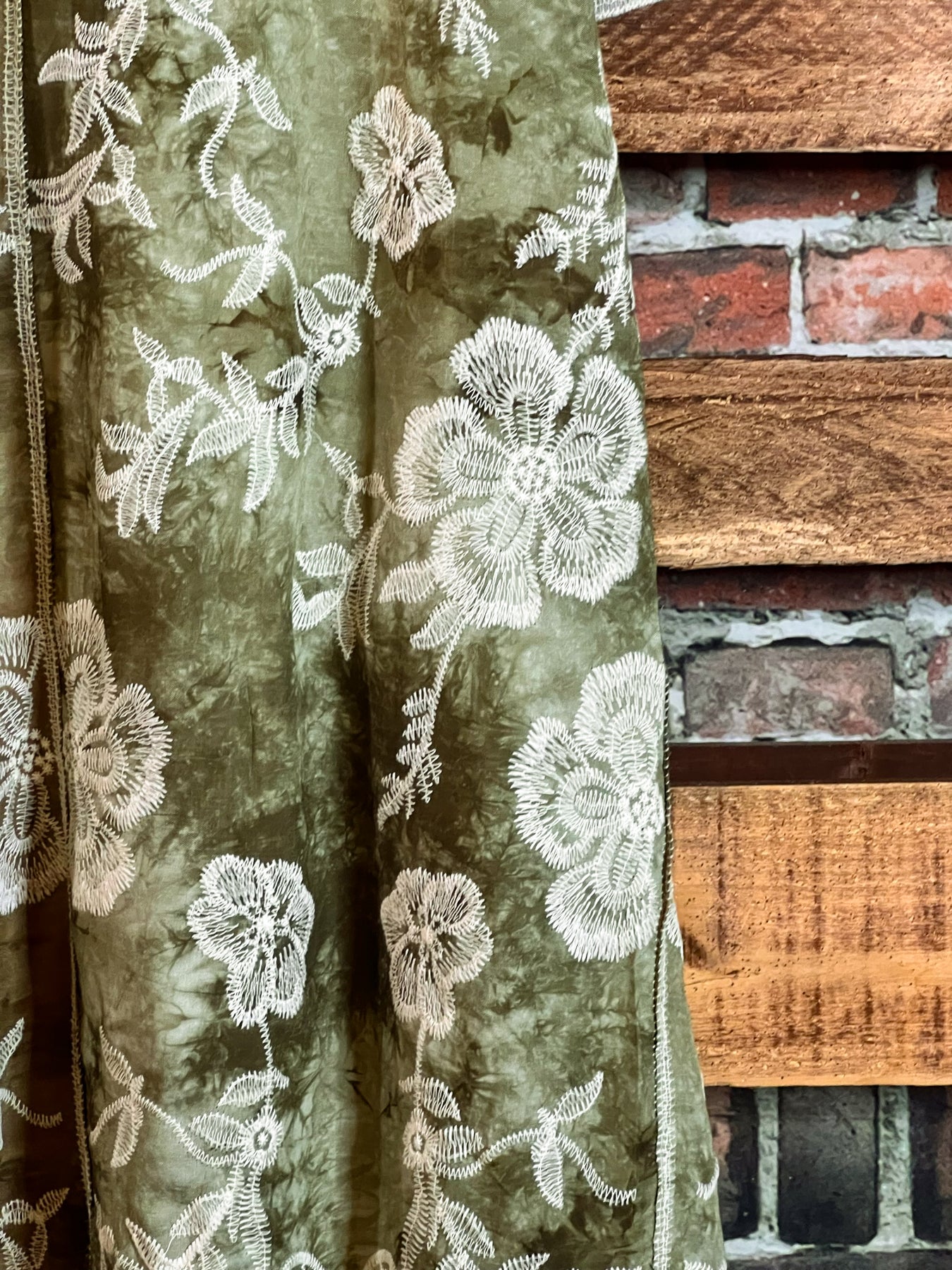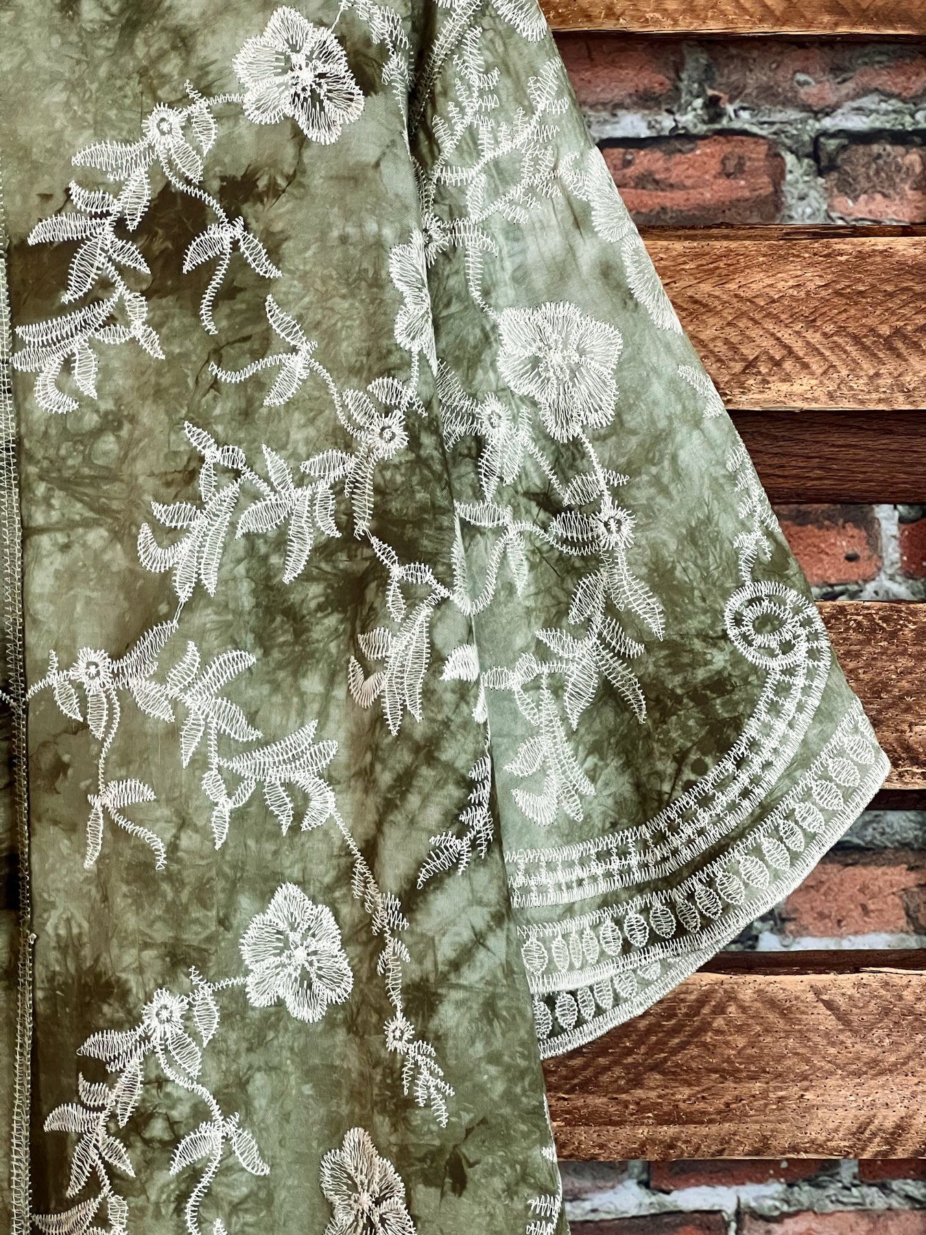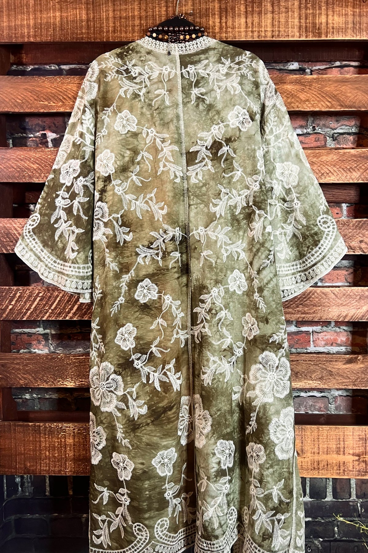 Le Bohemian Magic Dance Tie Dye & Embroidered Kimono in Olive