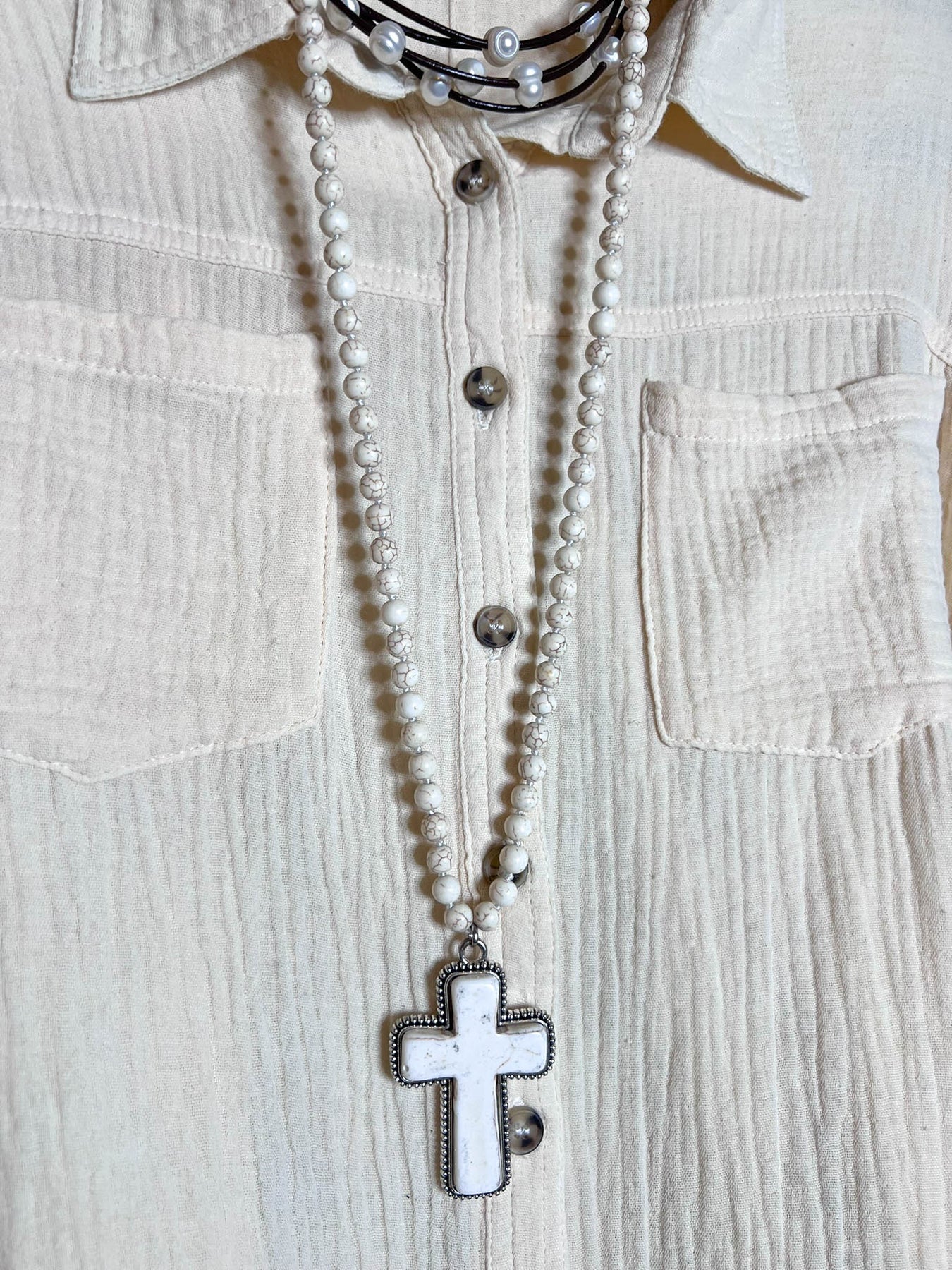 LIVE IN HARMONY 100% COTTON SHABBY SHIRT IN NATURAL BEIGE