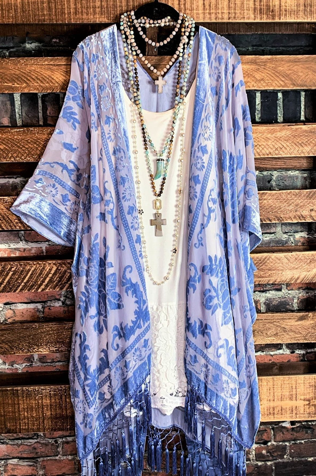 LA VIE BOHEME BLUE DENIM VELVET BURNOUT KIMONO