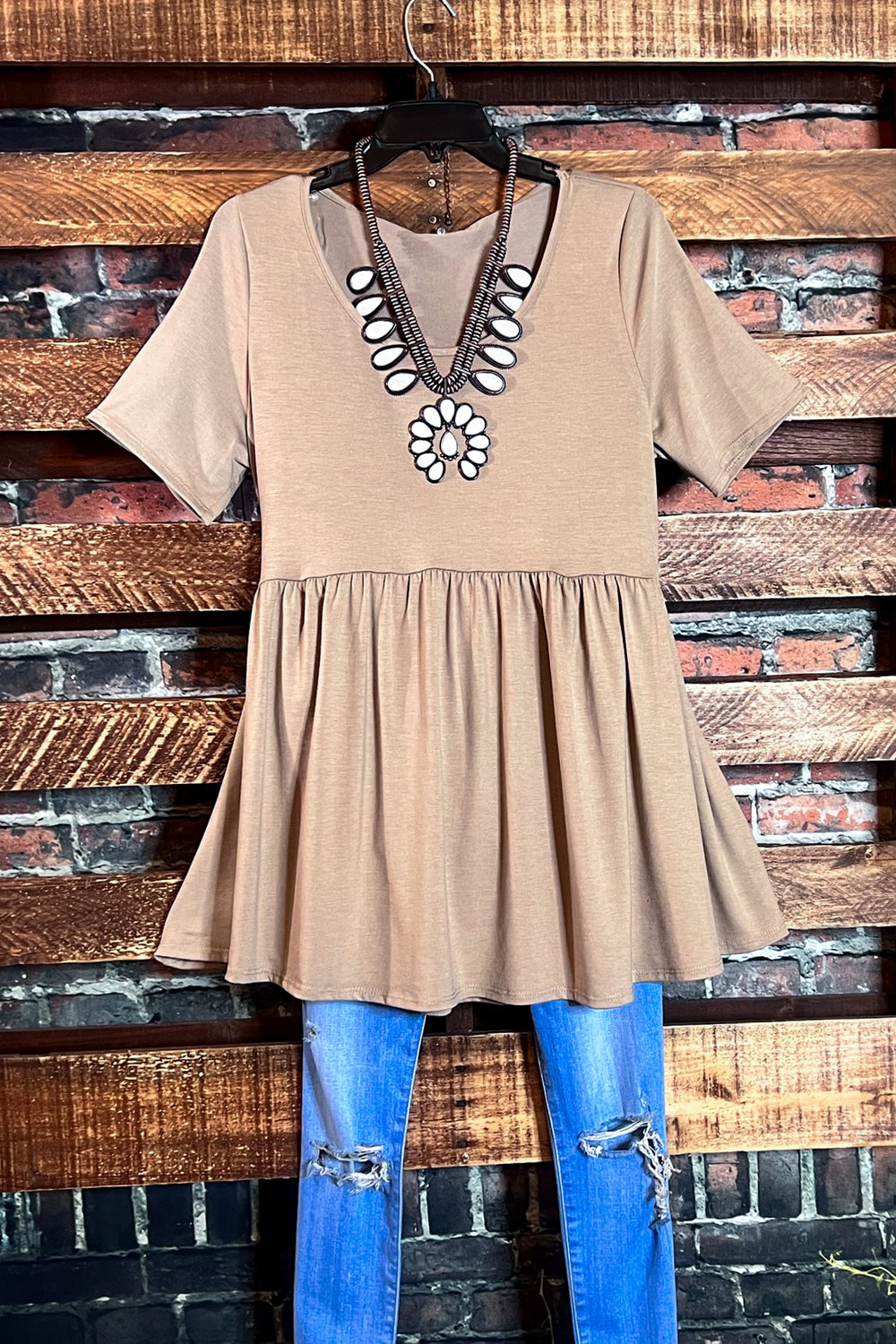ROSEWOOD ROMANCE BABYDOLL TUNIC IN BROWM & MOCHA