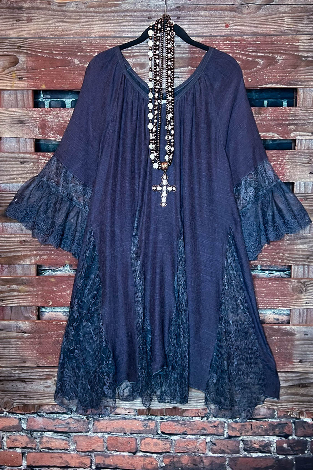 BOHO-CHIC LACE VINTAGE SWING OVERSIZED DRESS IN DARK GRAY