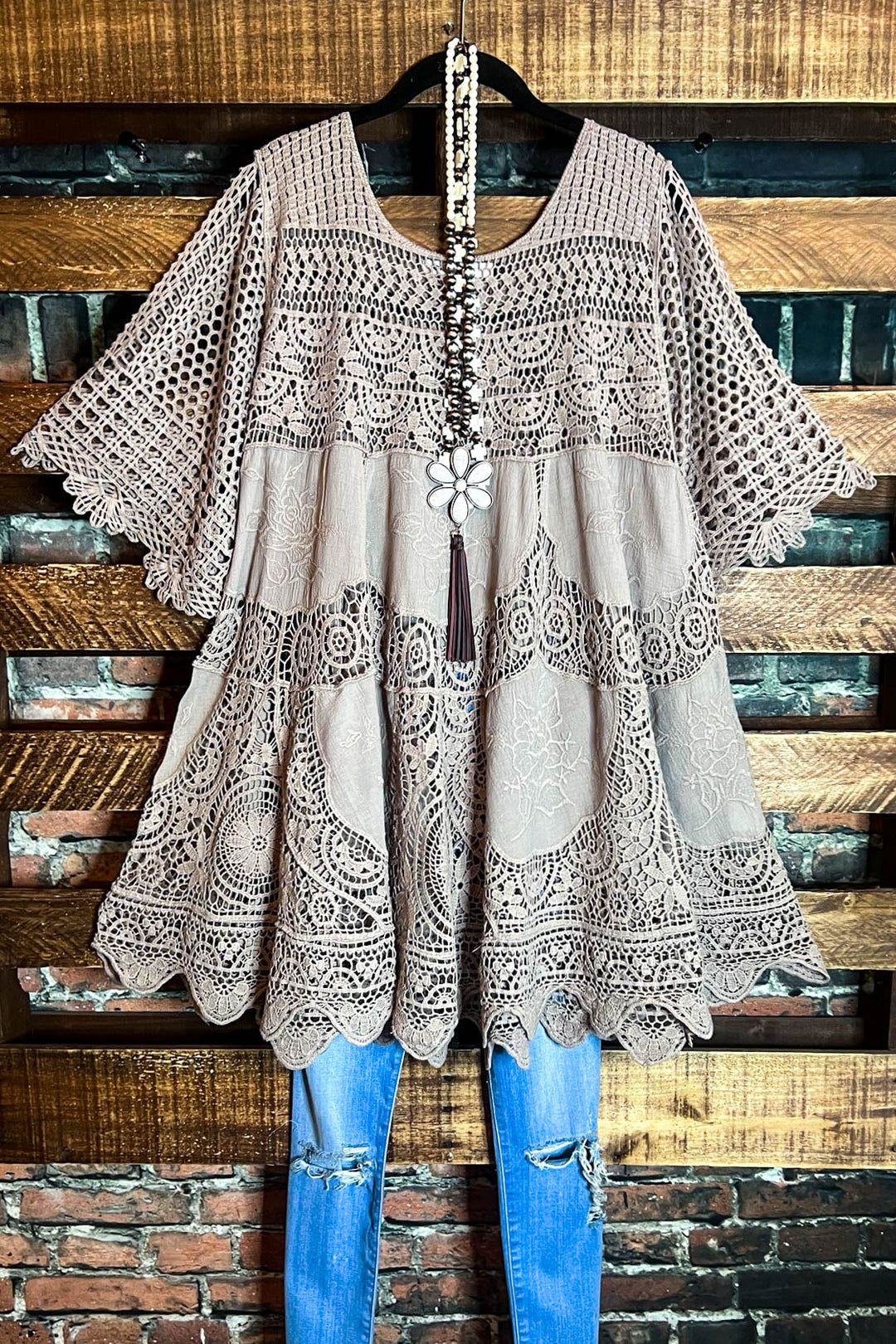GRACEFUL BEAUTY BROWN 100% COTTON CROCHET TUNIC