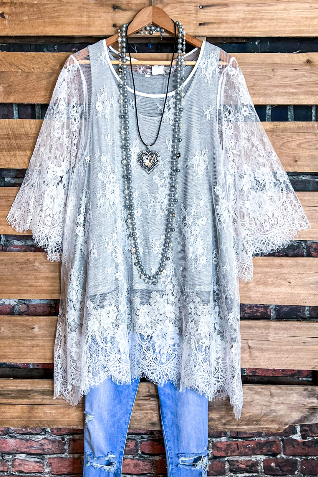 FULL OF GRACE GRAY LACE SLIP DRESS EXTENDER TOP