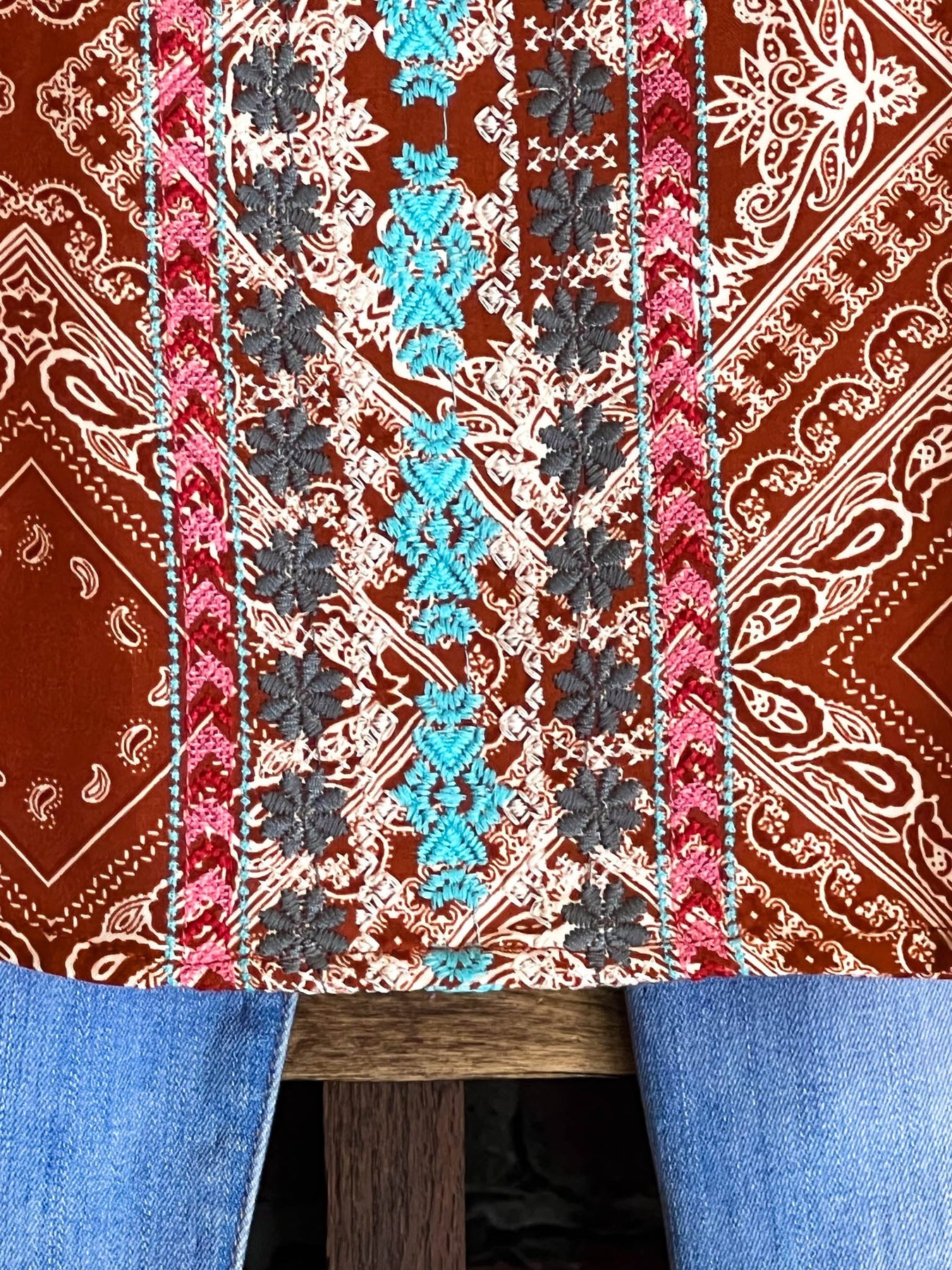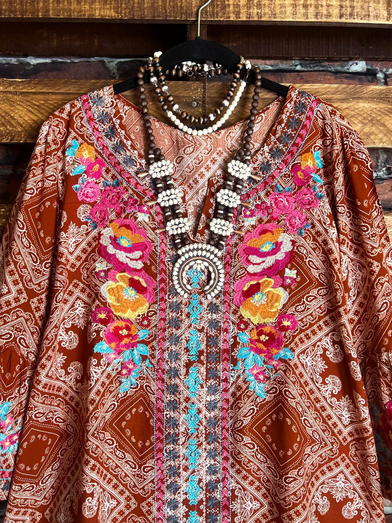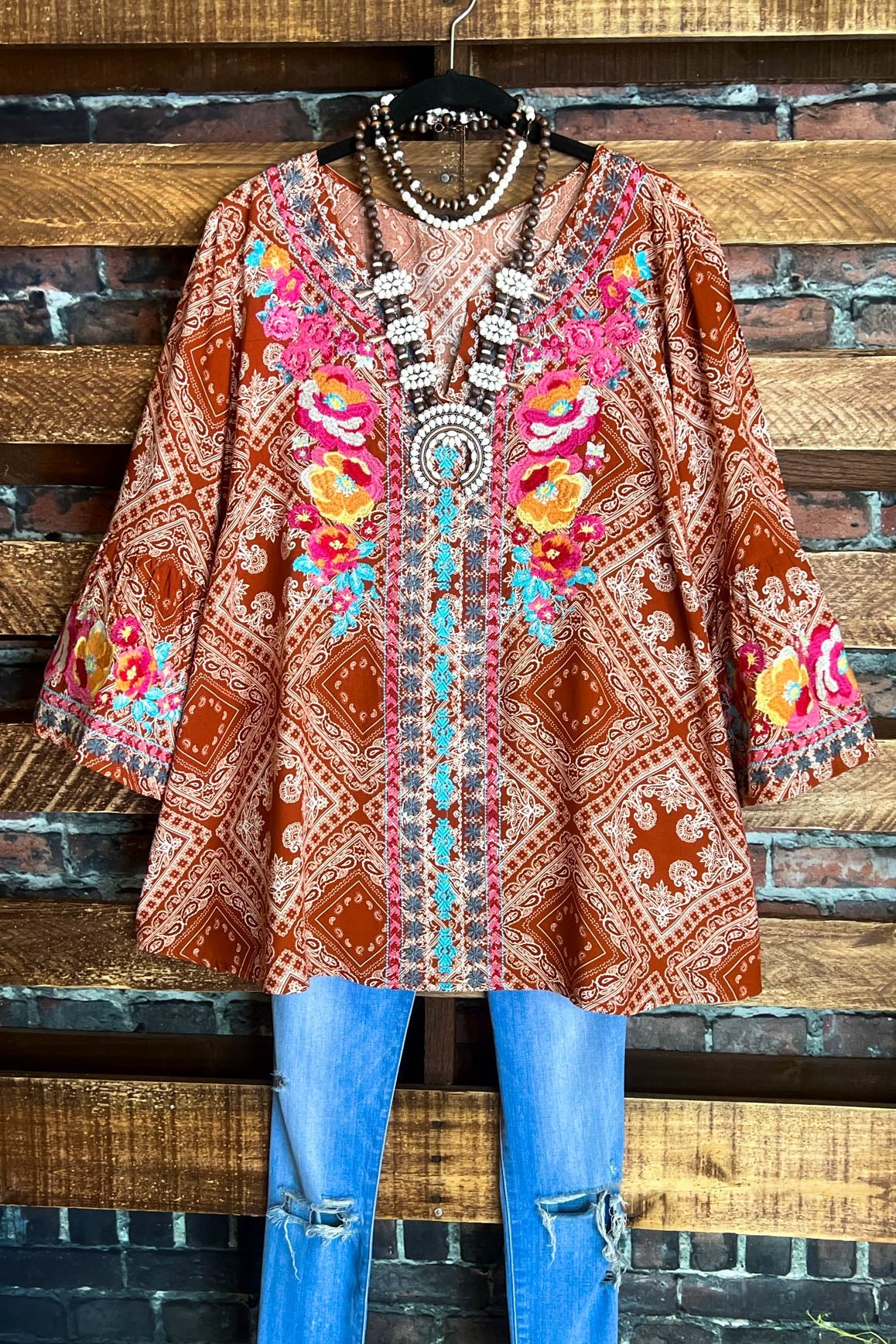 14-18 SIZE - RUSTIC BOHO EMBROIDERED TOP IN RUST--------SALE