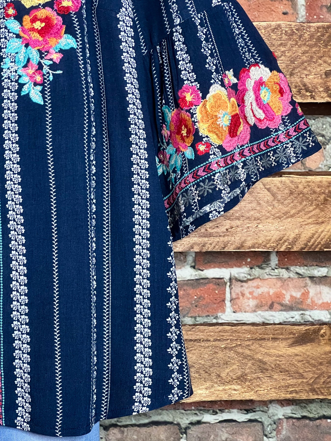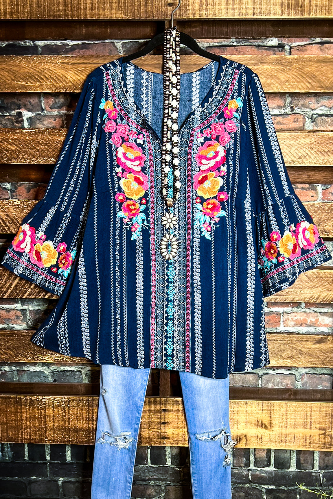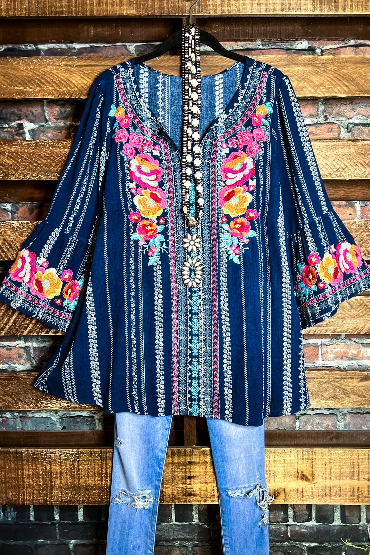16-18 - SIZE - LOVE'S HIGHT HOPE NAVY EMBROIDERED TOP----------SALE