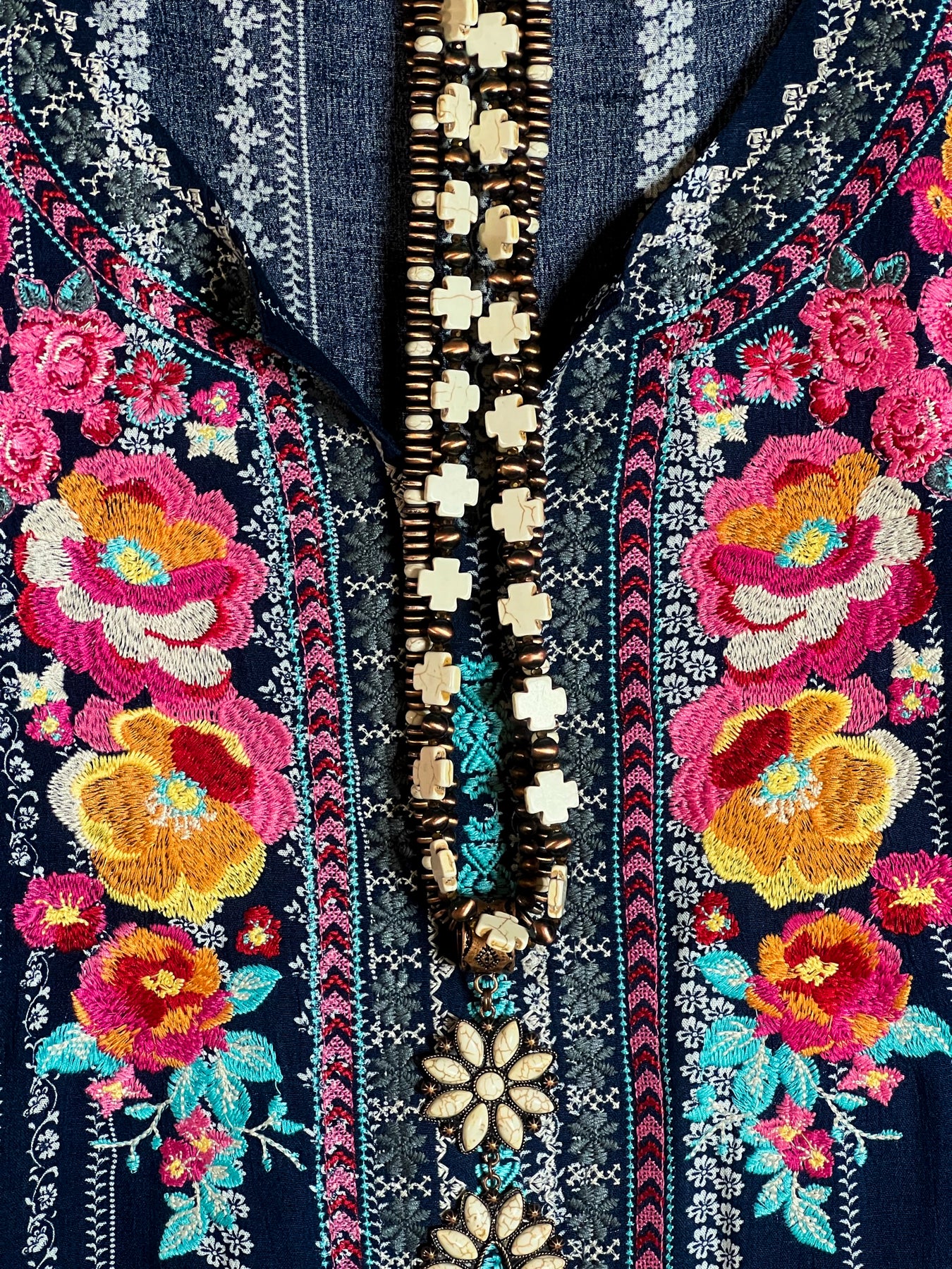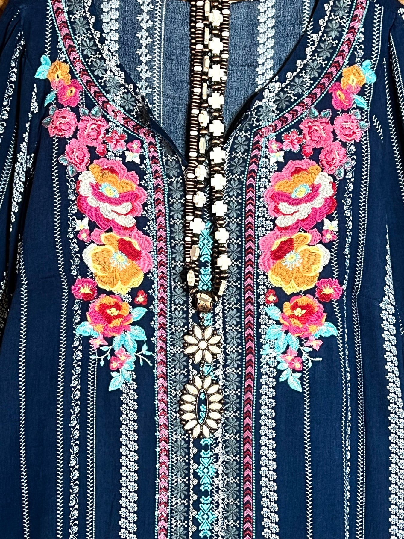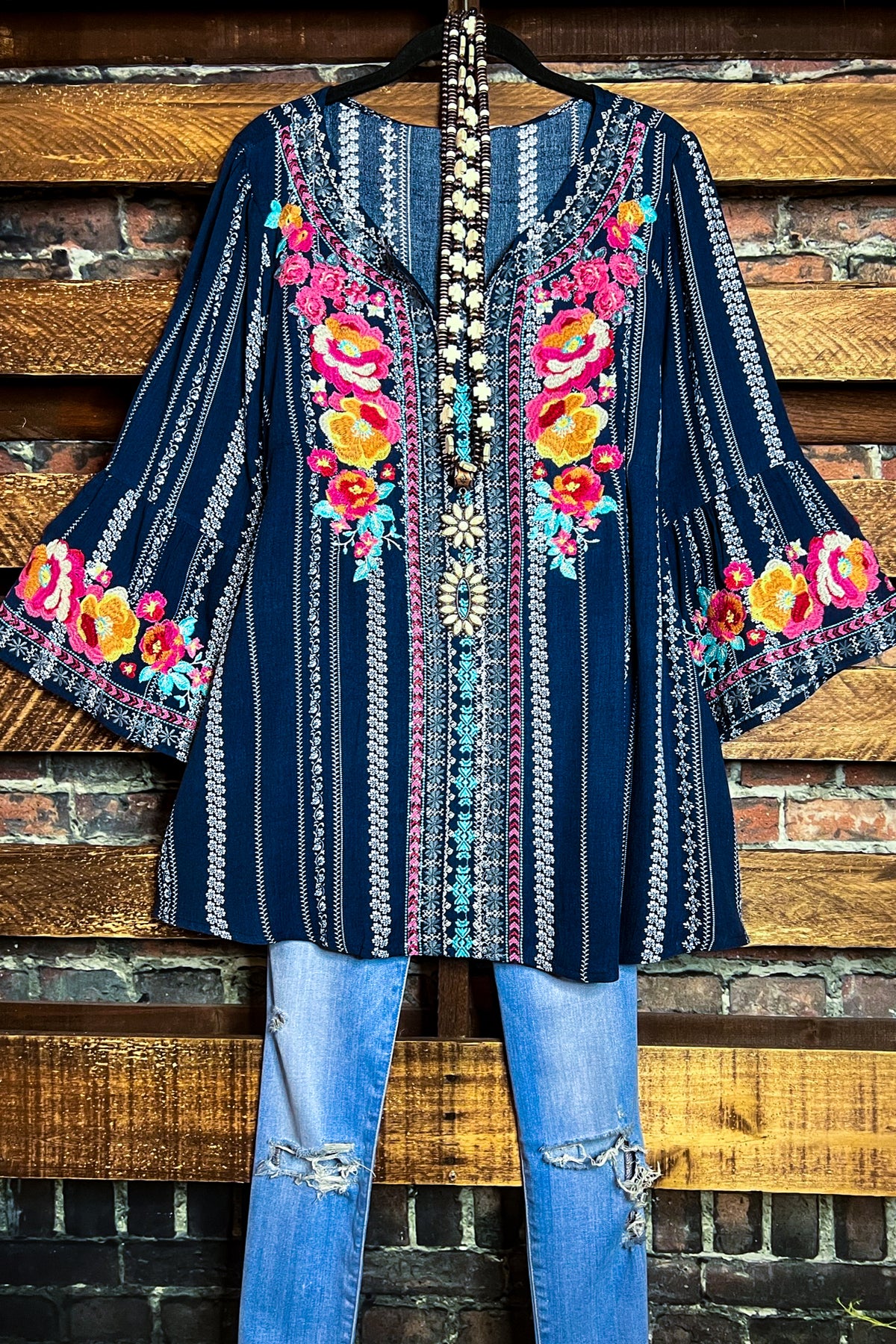 16-18 - SIZE - LOVE'S HIGHT HOPE NAVY EMBROIDERED TOP----------SALE
