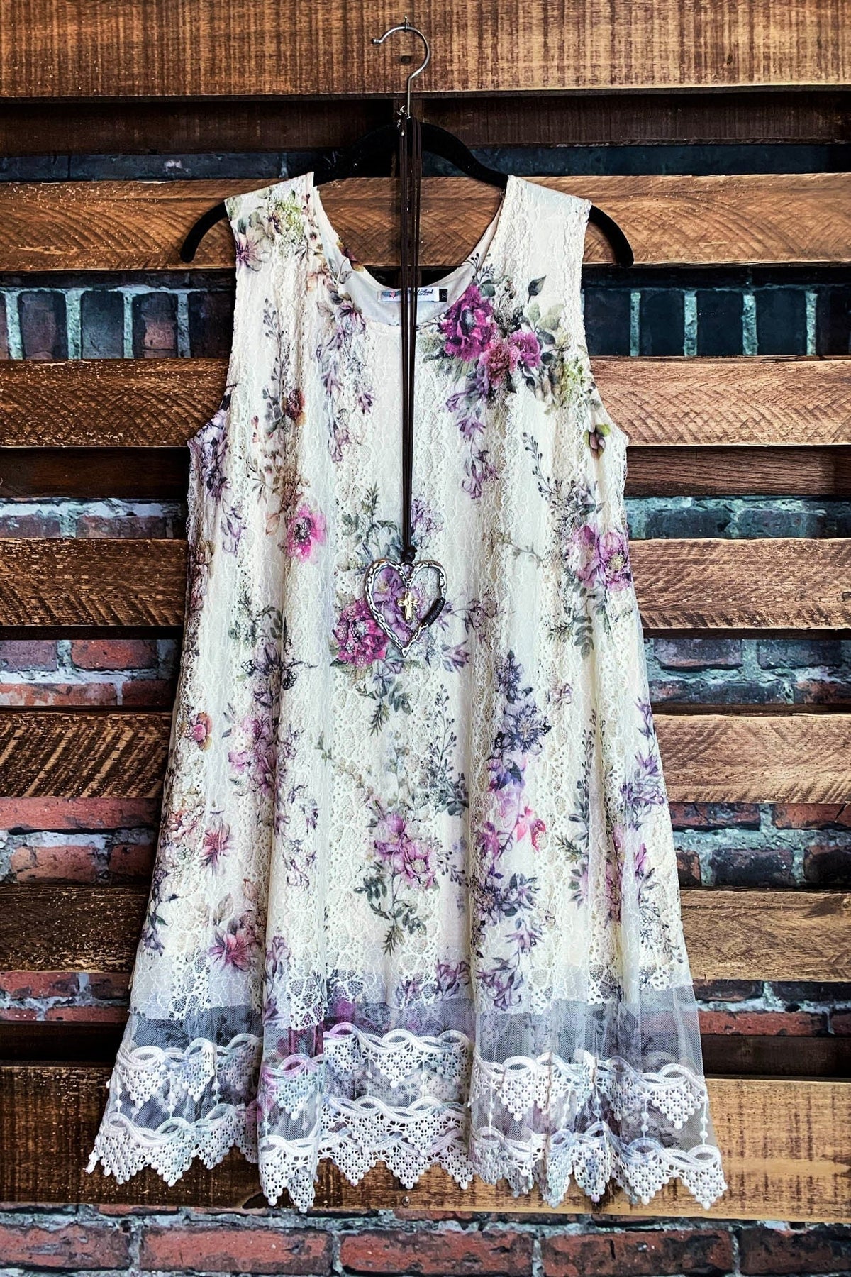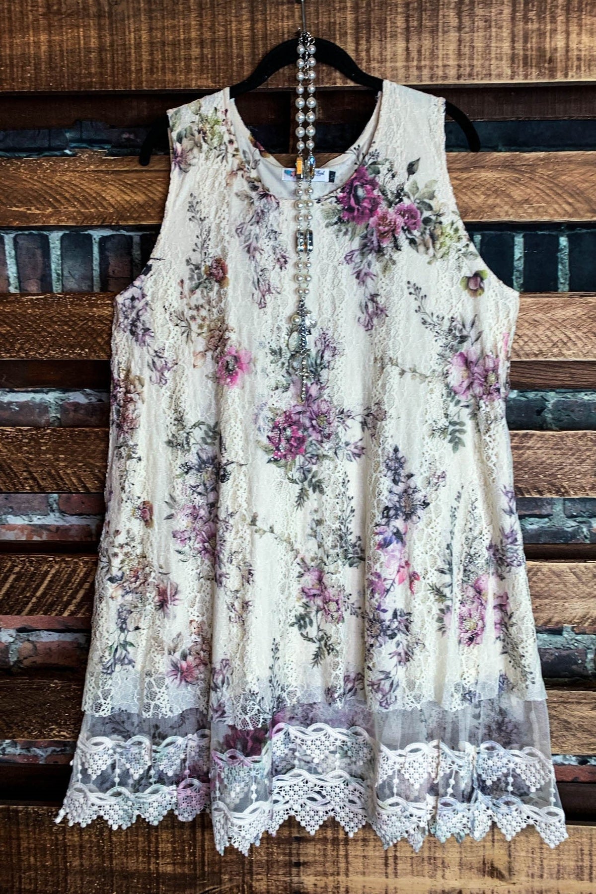 A LITTLE ENCHANTMENT ROSES LAYERED SLIP DRESS TUNIC IN  BEIGE & FLORAL