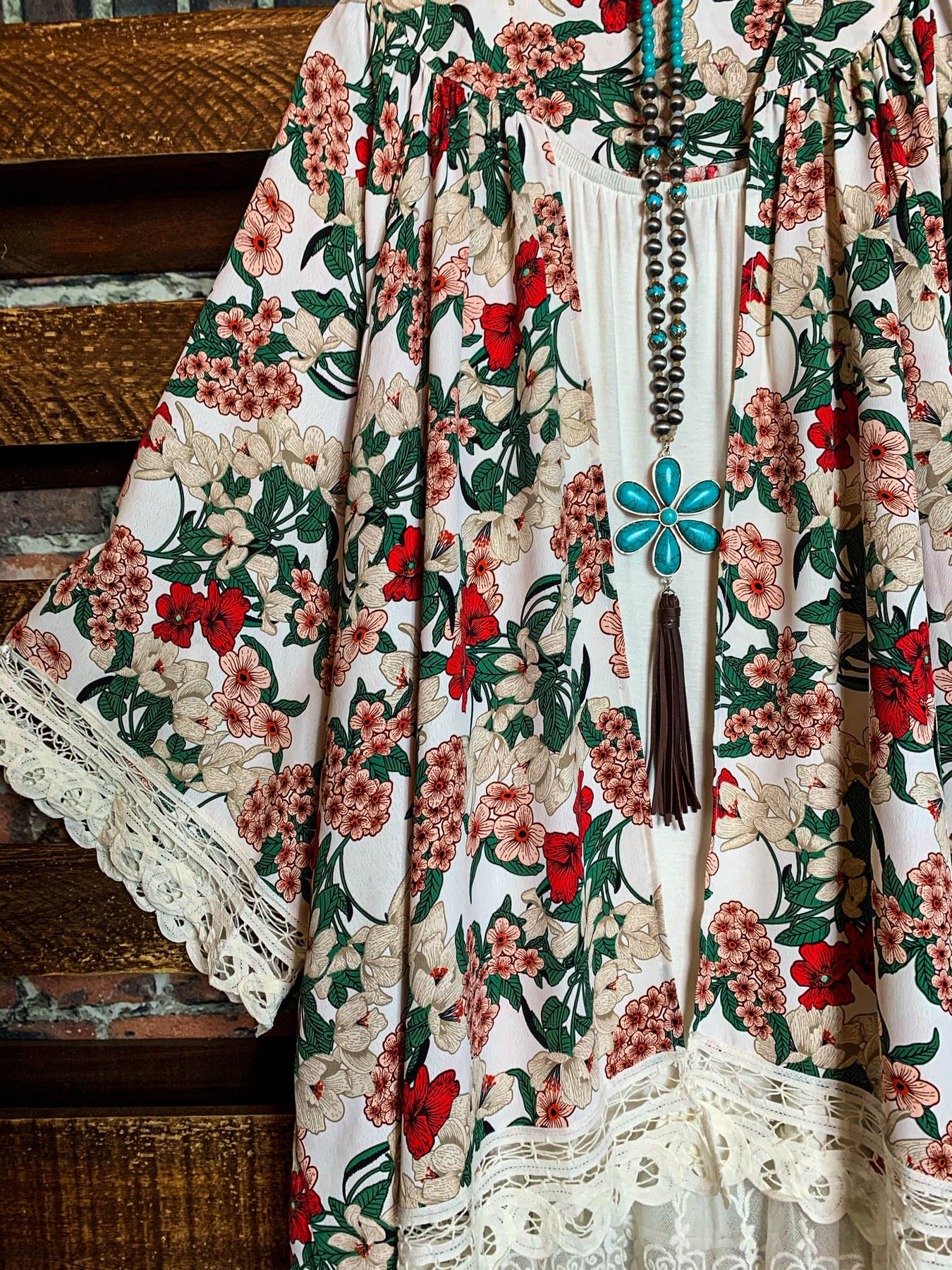 BLISSFUL DAYS FLORAL KIMONO IN MULTI-COLOR--------------sale