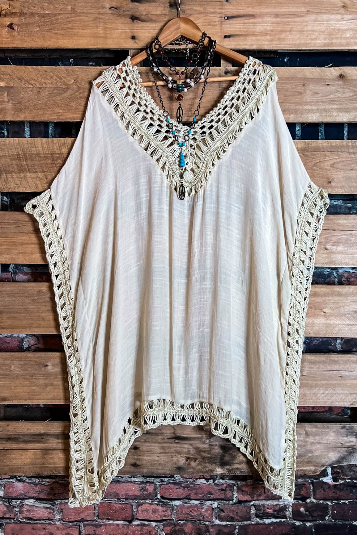 Bohemian-Ruana Tunic Poncho Timeless With a Fringe Trim and Crochet Detail Embellished