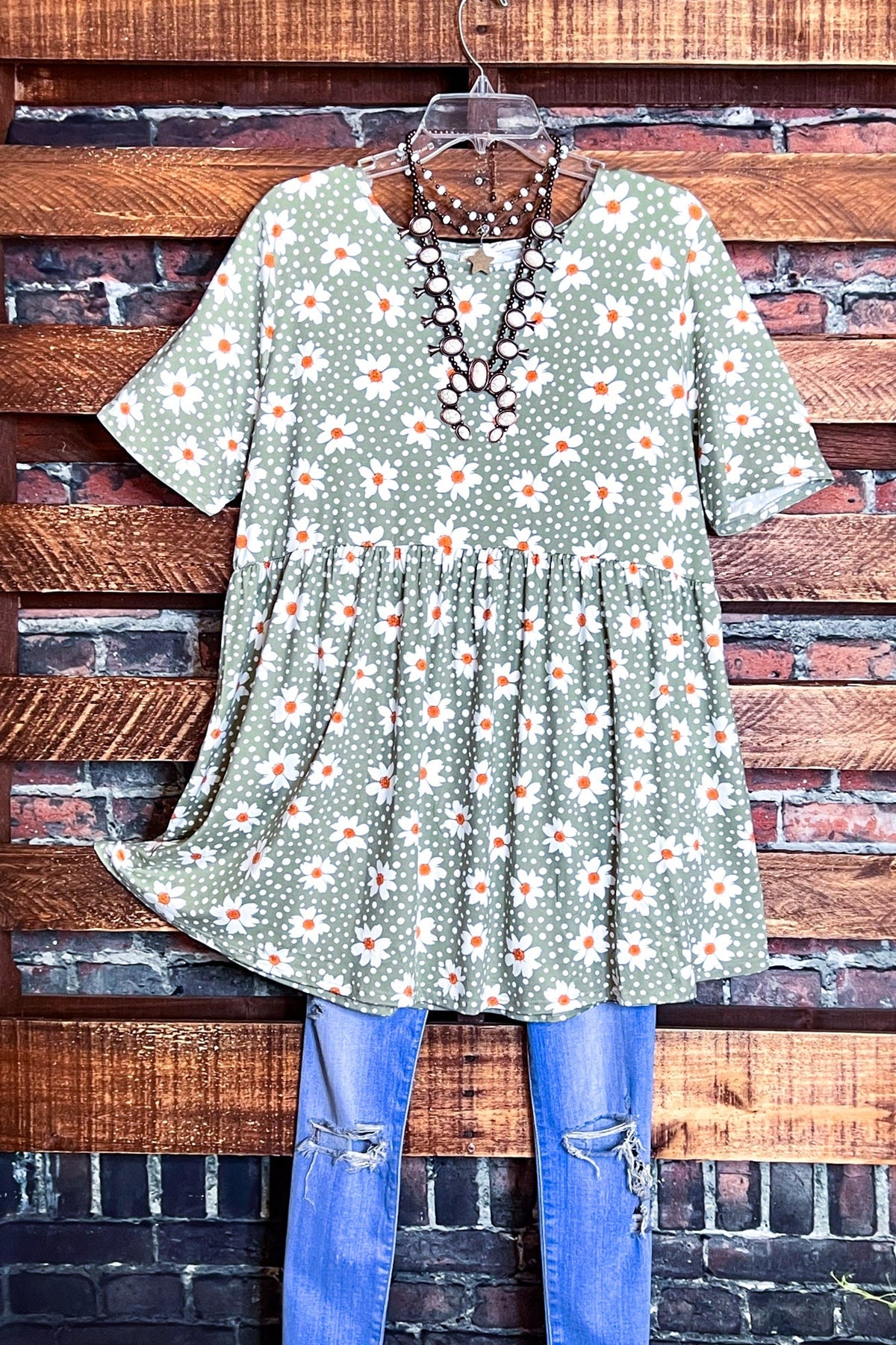 DAISY BLOOMS BABYDOLL TOP IN SAGE FLORAL