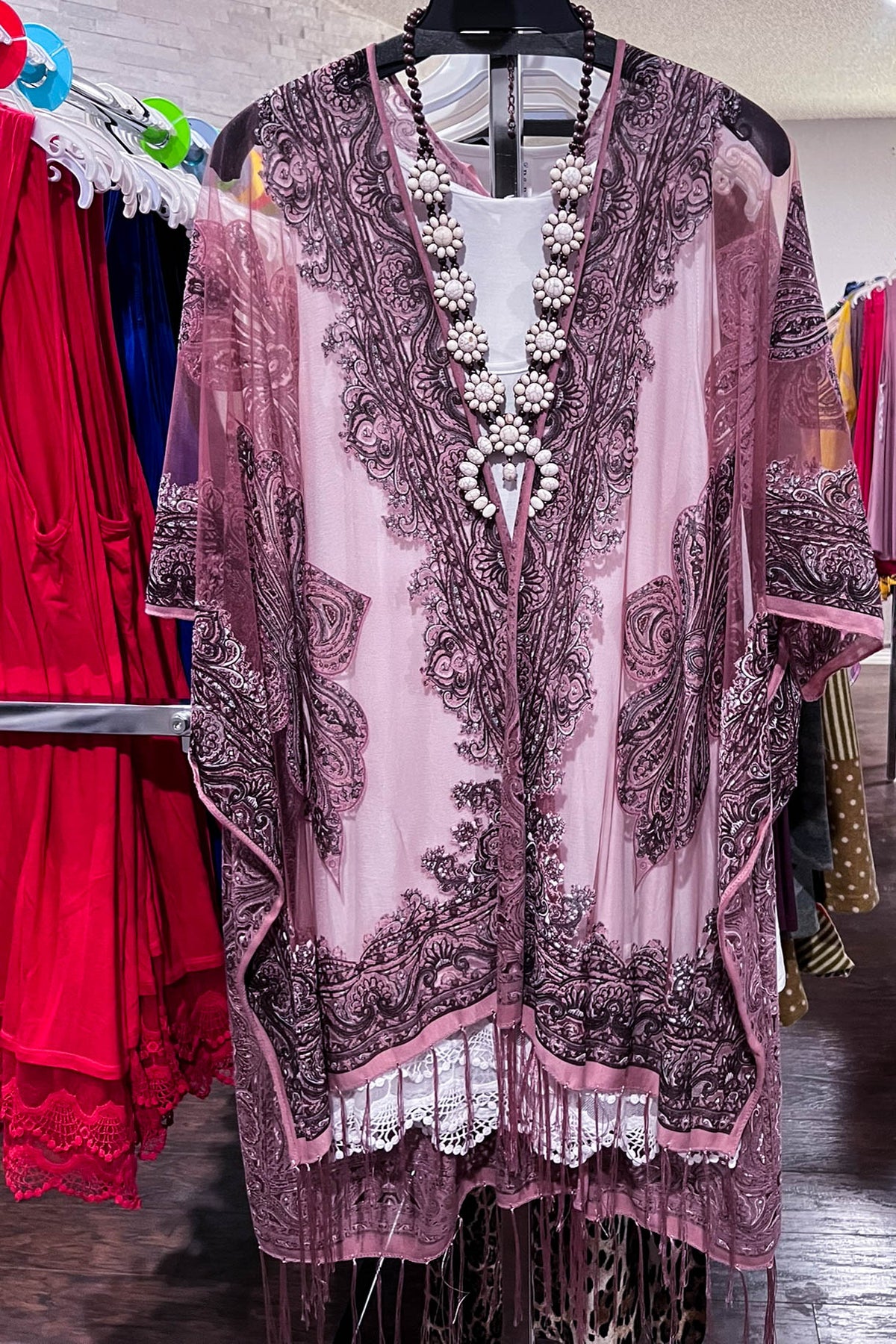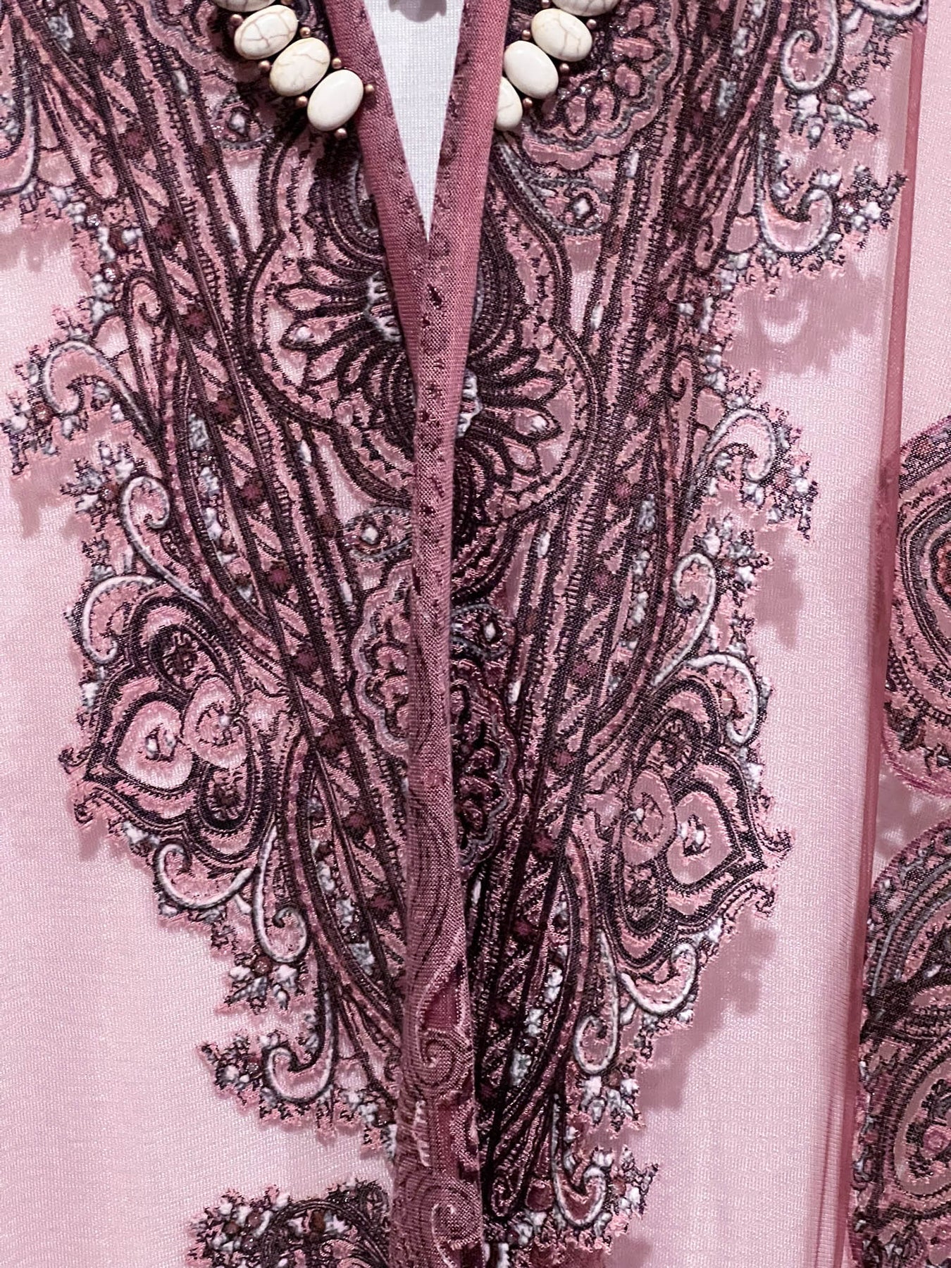 ENCHANTING WAYS VELVET & BURNOUT KIMONO IN OLD ROSE ---------SALE