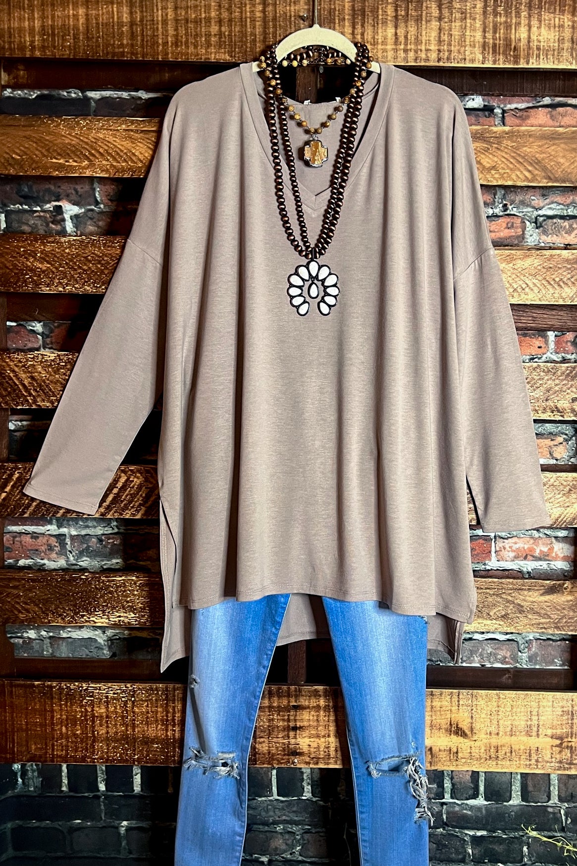 FOREVER PERFECTLY SIMPLE & OVERSIZED T-TUNIC IN ASH MOCHA------SALE