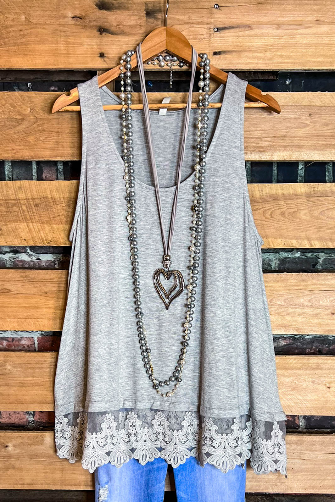 FULL OF GRACE GRAY LACE SLIP DRESS EXTENDER TOP