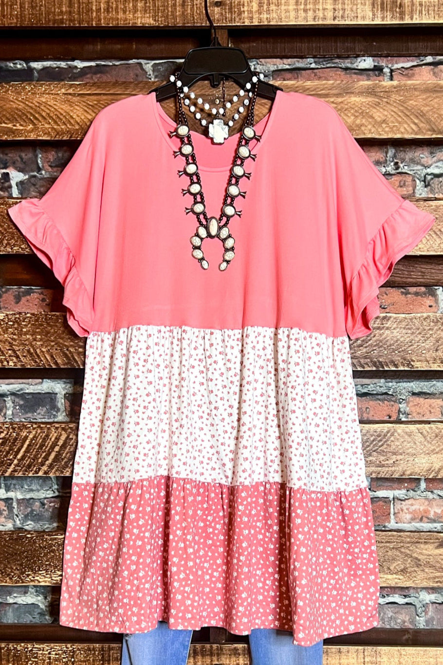 GRACEFUL SIMPLICITY FLORAL BABYDOLL TOP IN CORAL ROSE
