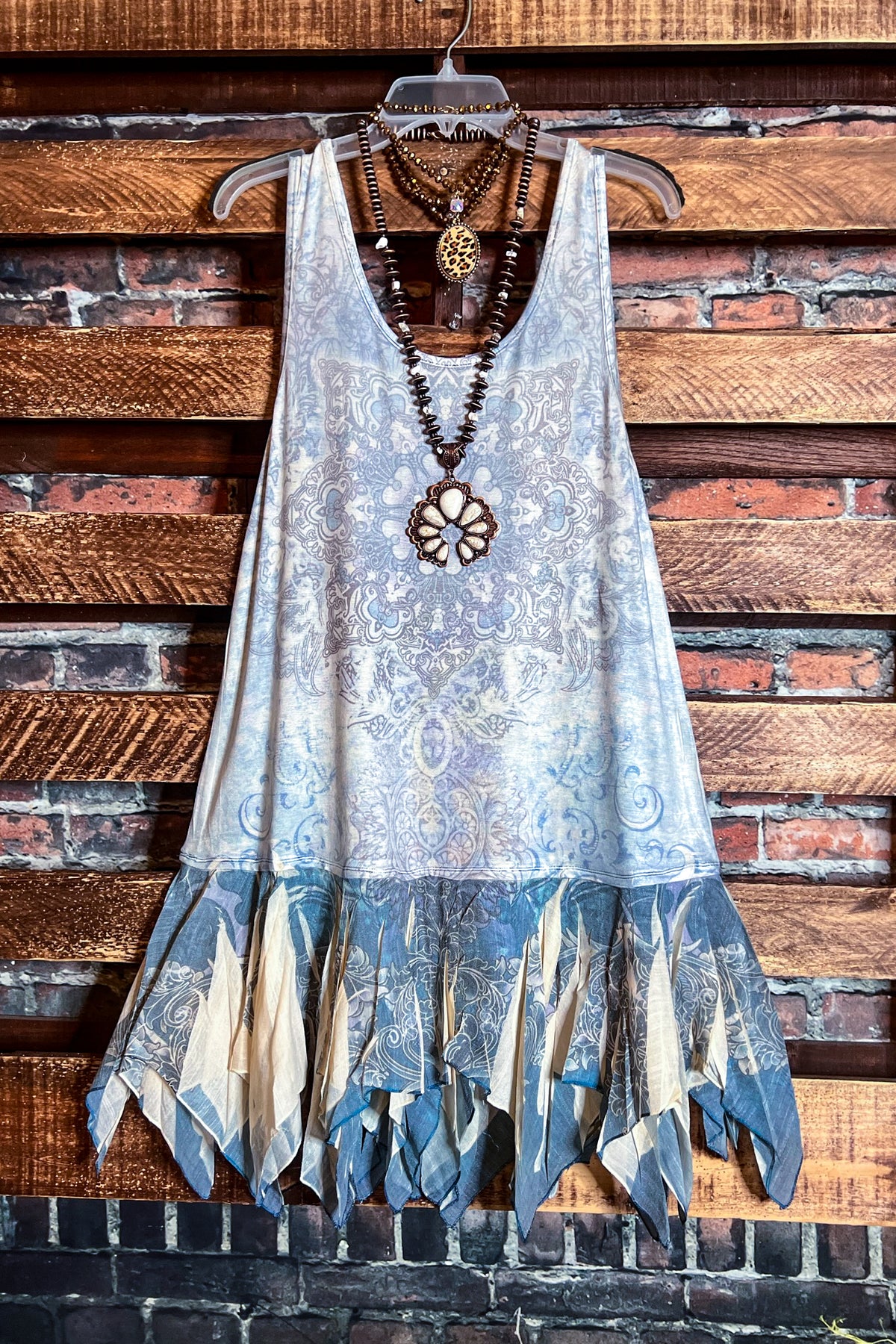 GRACEFUL VISION TUNIC LAYERING DRESS IN BLUE & MULTI