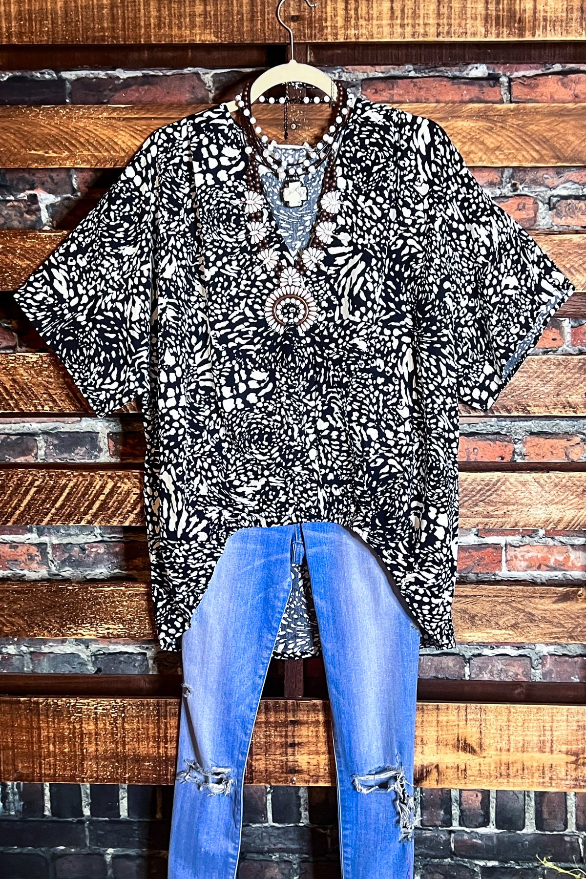 LEOPARD PRINT TOP IN NAVY  ------------ SALE