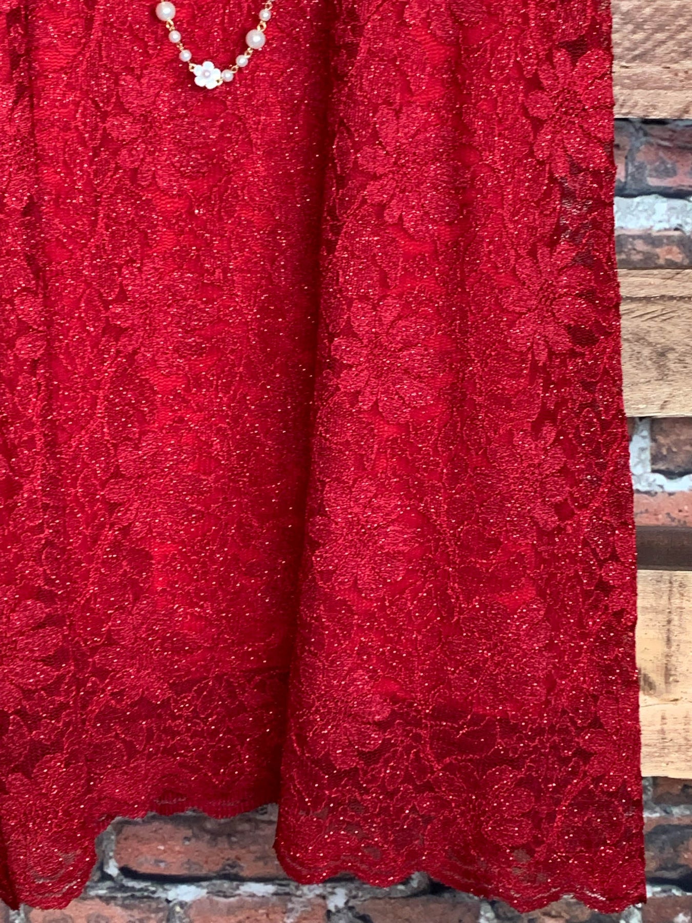 LOVELY DAY RED RUBY LACE SPARKLE DRESS 6 - 14