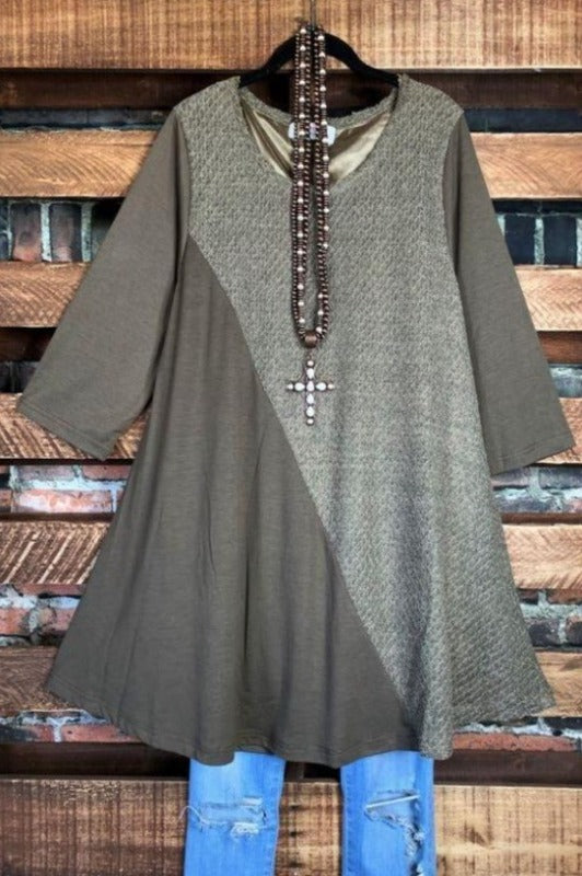 MY FANCY & PRETTY T-SHIRT TUNIC IN MOCHA------------SALE
