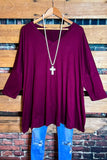 SIMPLE IS BETTER CASUAL T-SHIRT TUNIC IN BURGUNDY