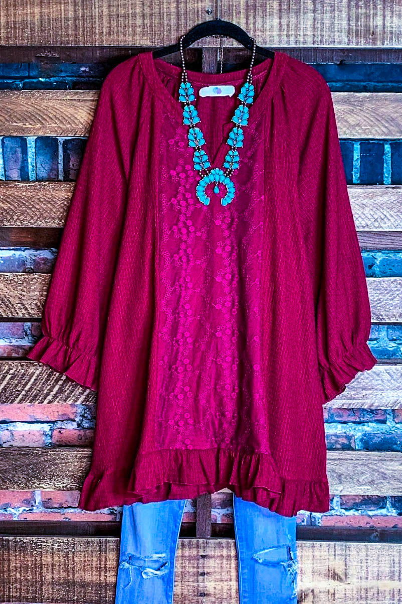 SMALL TO 2X Uptown Sweet Moments Crimson Lace Top--------SALE