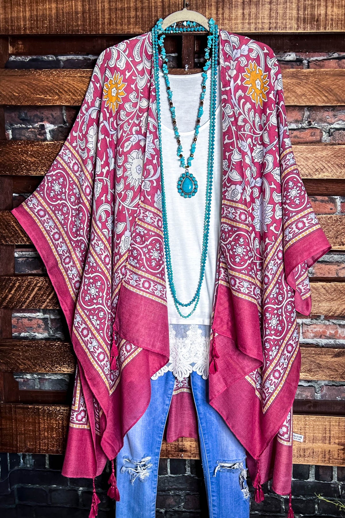 TICKETS TO PARADISE BOHO KIMONO IN FRENCH RED CLAY