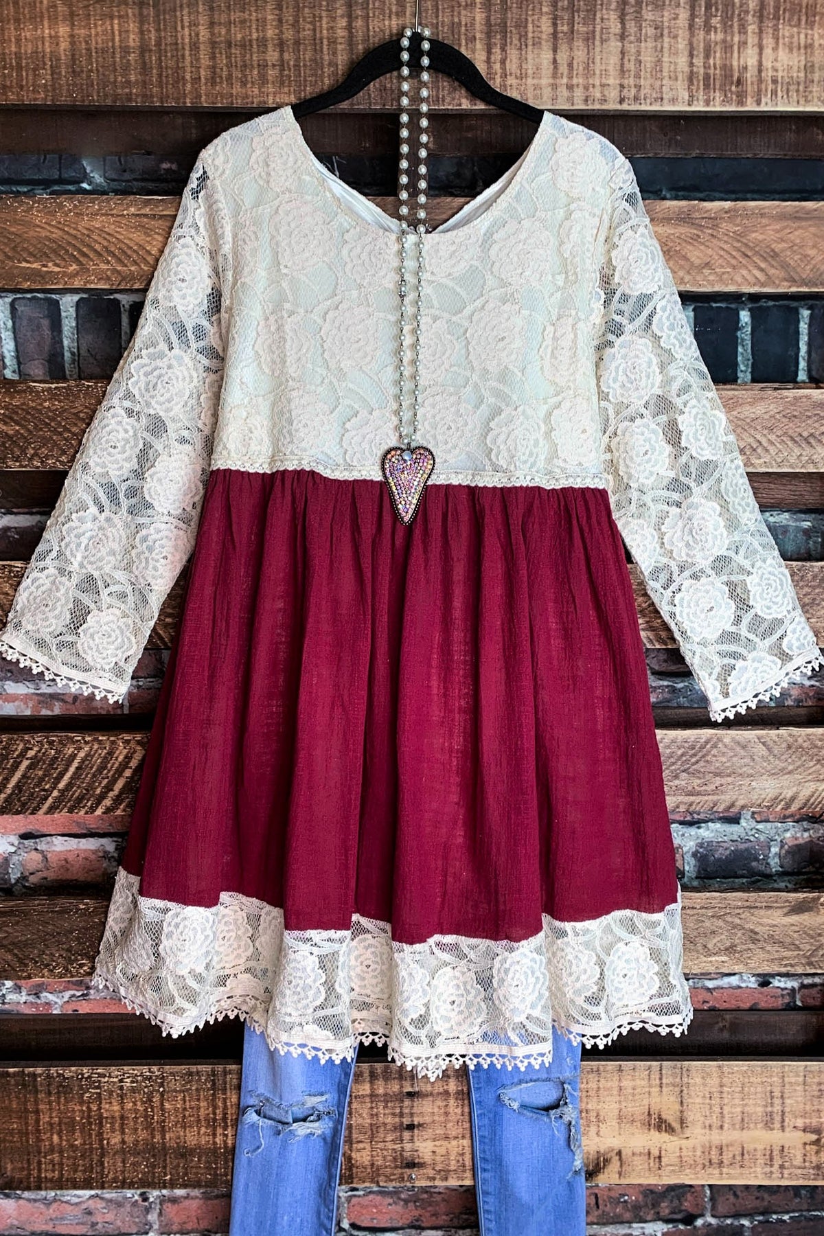 You and Me Could Write a Good Romance Lace Dress in Beige & Crimson-----------SALE