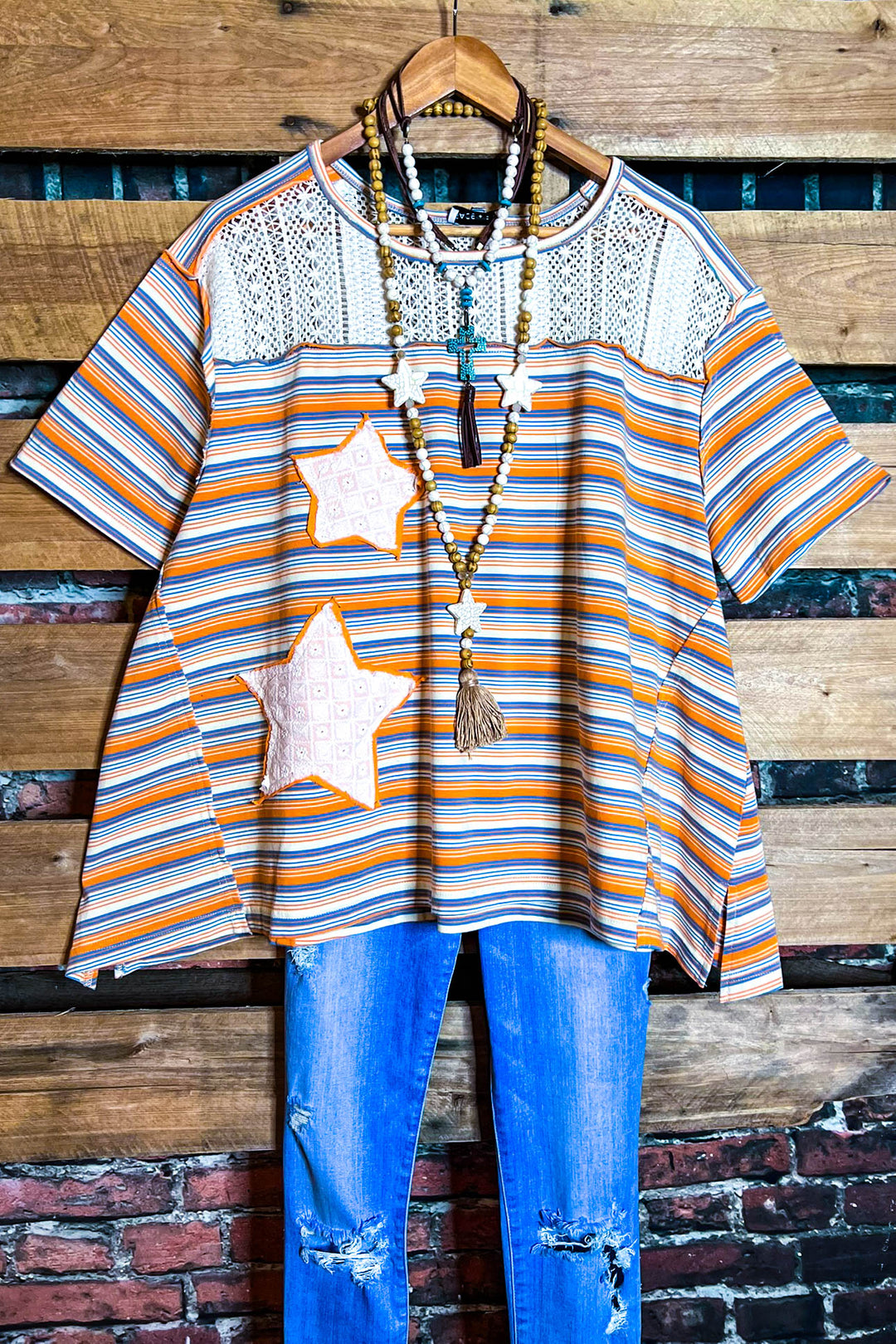SPIRIT OF BLISS STARS BLUE DENIM MESH TOP