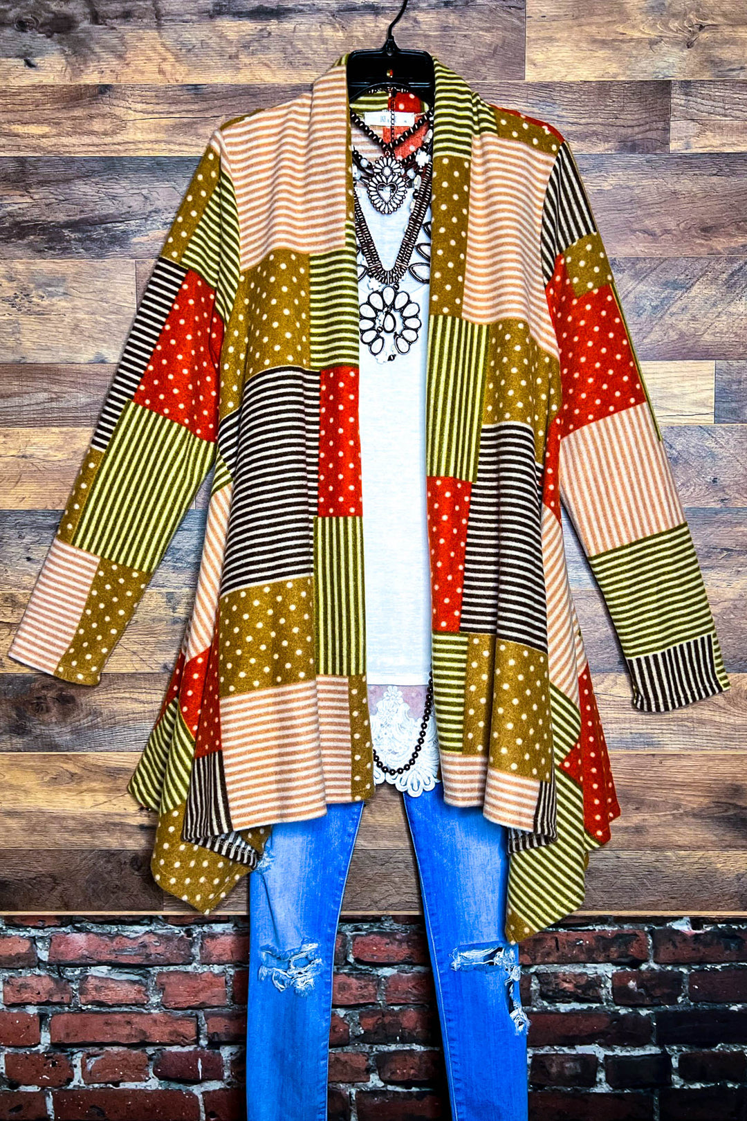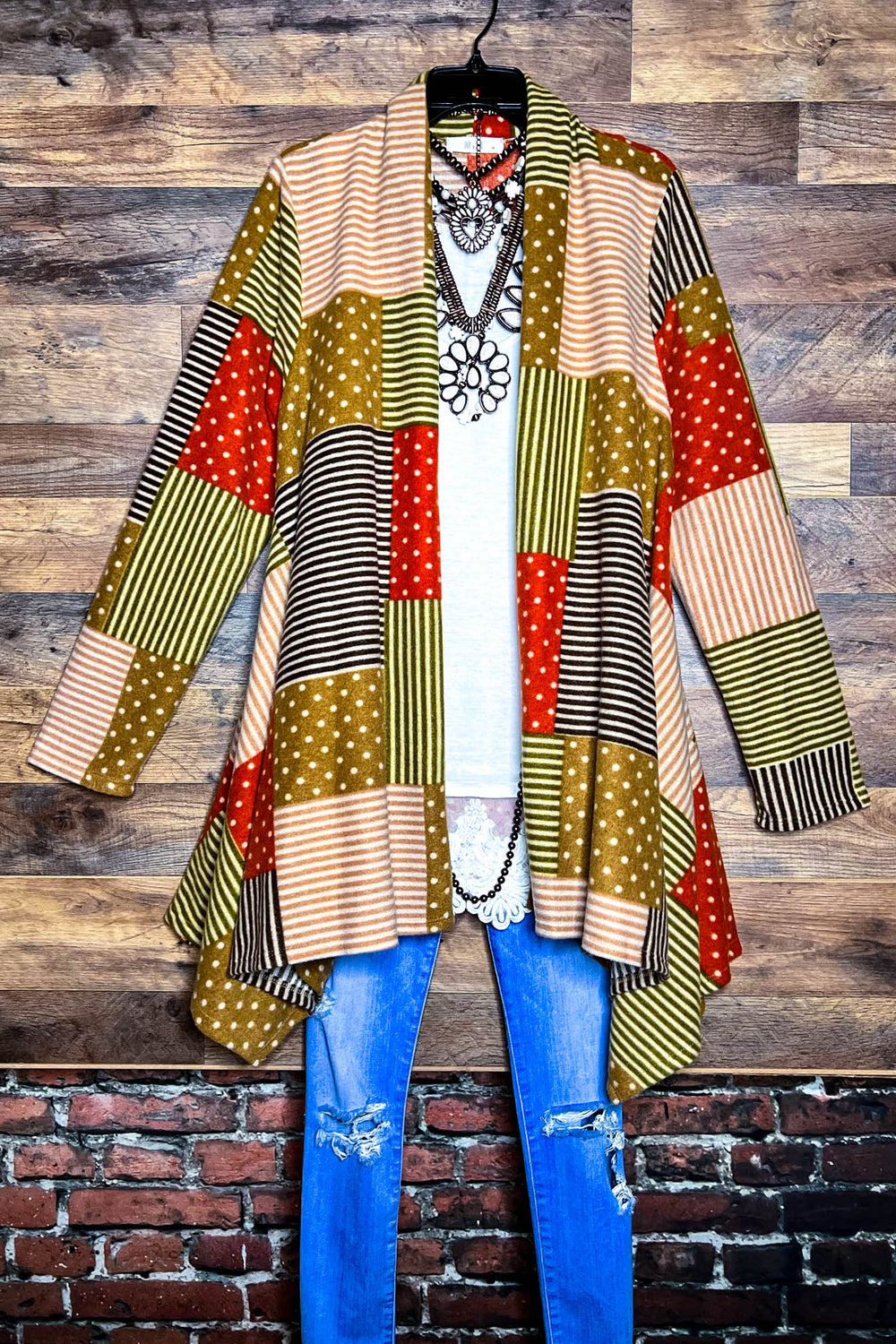 24-26 SIZE - PATCHWORK PRINT MULTI-COLOR CARDIGAN----SALE