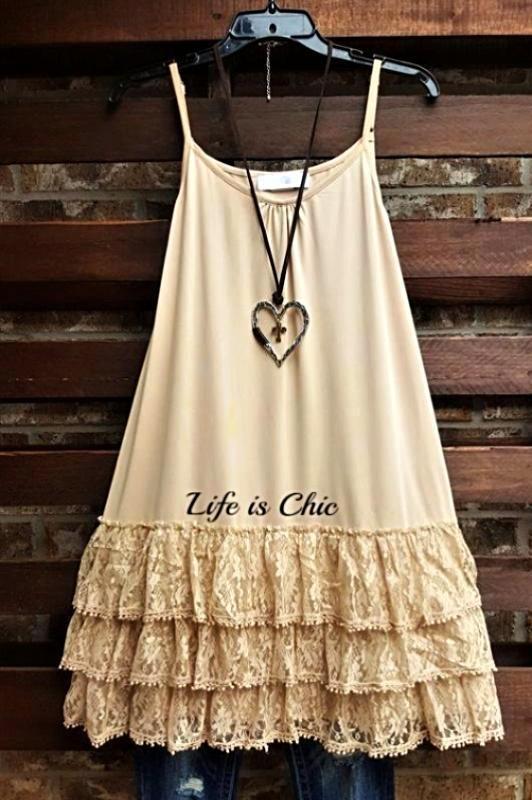ALL THE PRETTY THINGS TAUPE LACE TRIM DRESS TUNIC