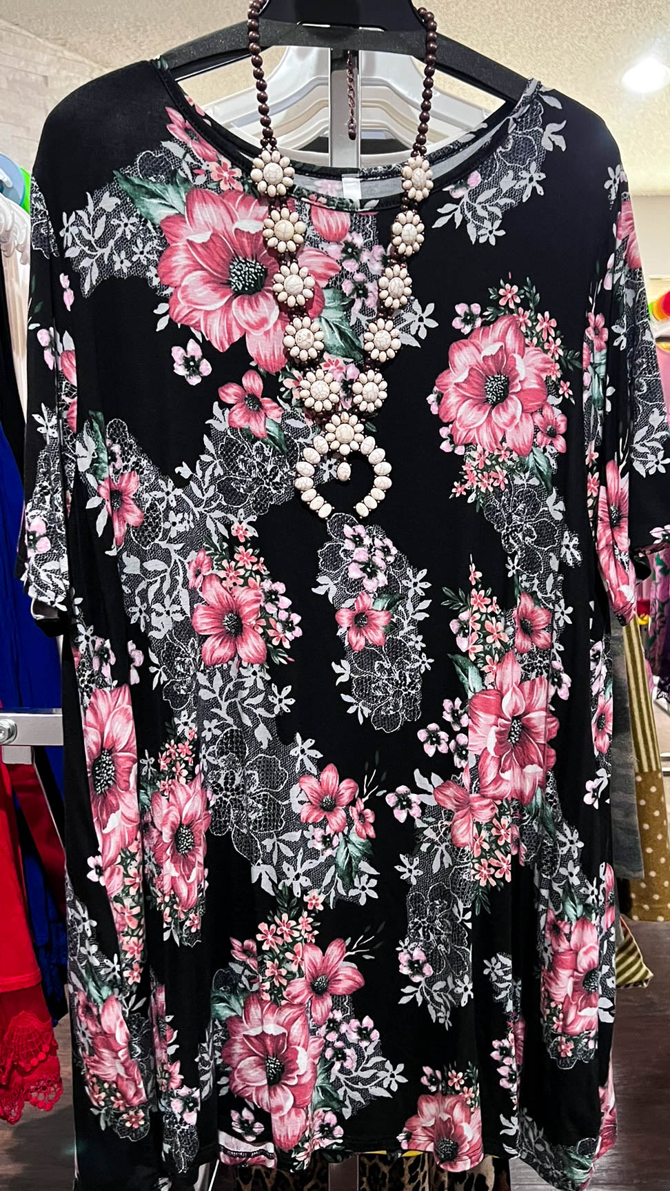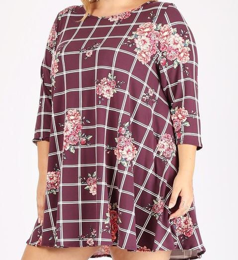 2X - 3X FLORAL TUNIC IN WINE---------sale