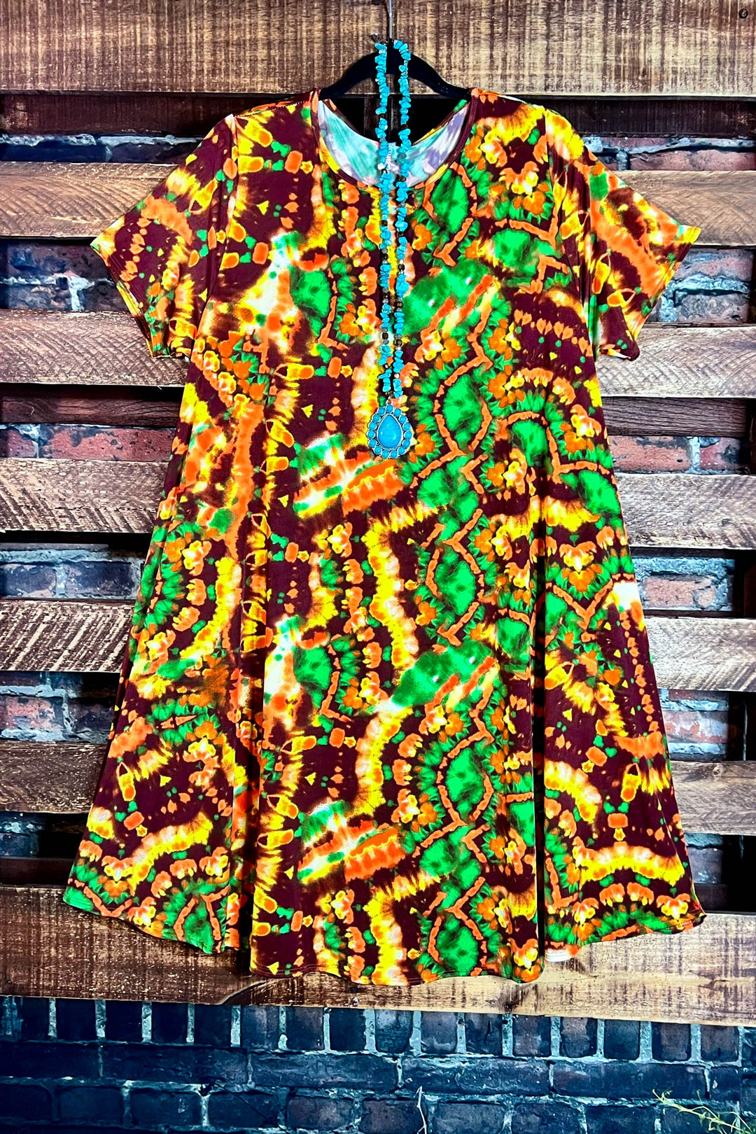 A Love So Sweet Tie Dye Dress In Olive & Multi-Color