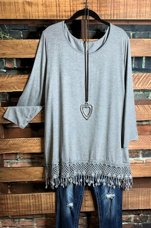 14-16 T-SHIRT TUNIC FRINGE LACE IN GRAY------------SALE