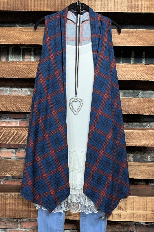 I'M SO IN LOVE PLAID VEST IN NAVY------------sale