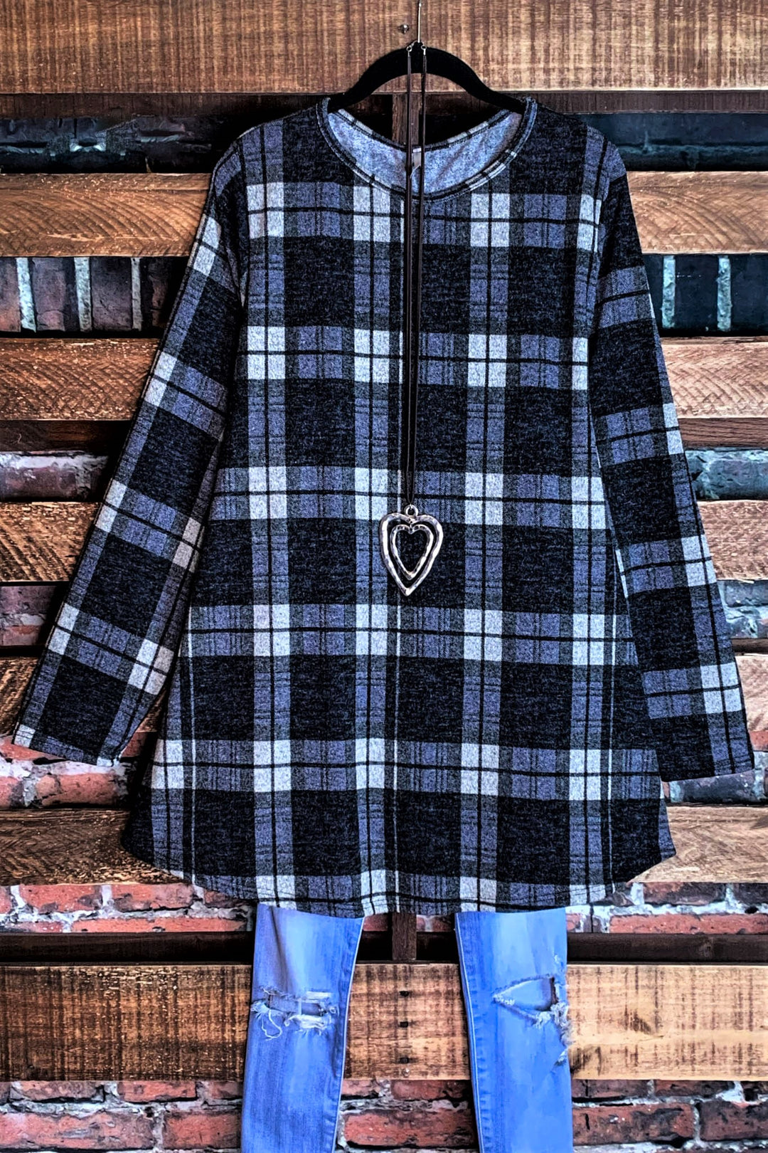 22-26 PLAID HACCI SWEATER TUNIC IN BLACK & MIX-------SALE