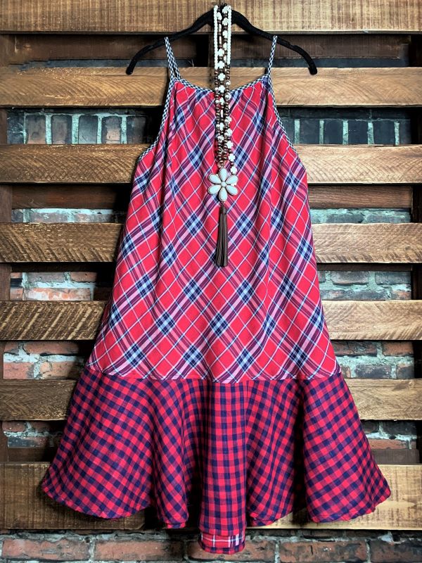 TOUCH OF SWEET PLAID DRESS IN RED MIX SMALL SIZE-------------SALE