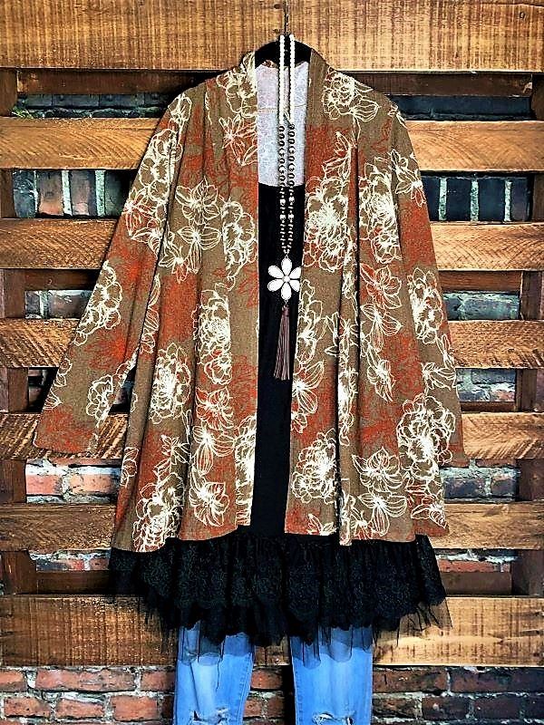 16-24 SOFT FLORAL CARDIGAN IN MOCHA & RUST------------SALE