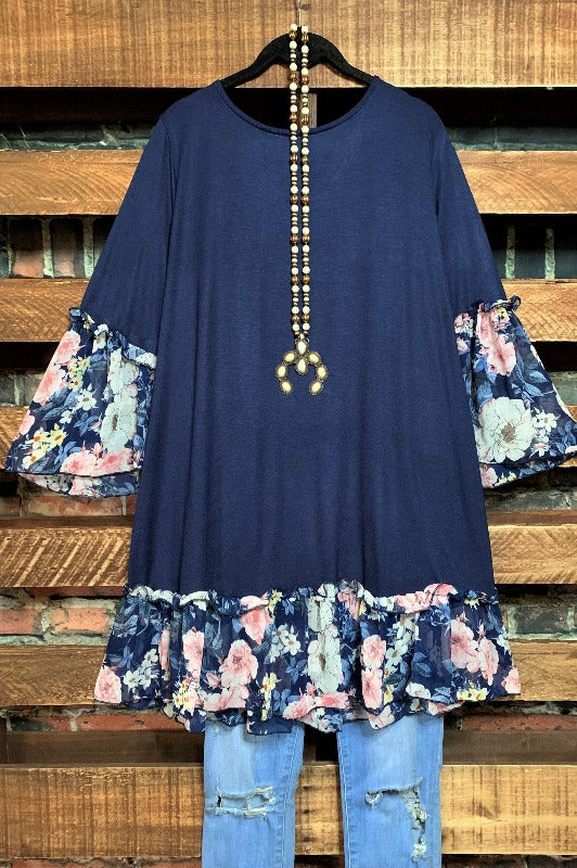 16-20 NAVY GARDEN TUNIC FLORAL PRINT---------SALE