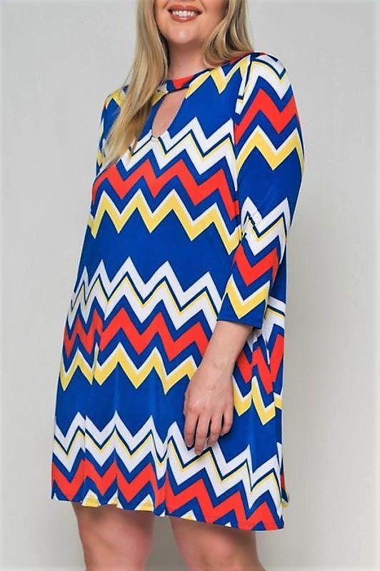 1X-2X-3X BLUE & CORAL RED CHEVRON PRINT DRESS------------SALE