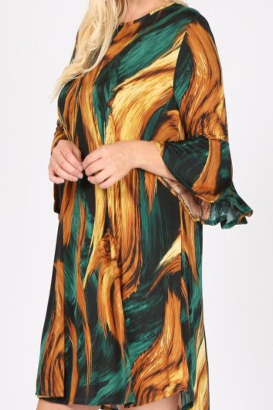 2X - RUFFLE SLEEVE SWEATER TUNIC IN LEOPARD---------SALE