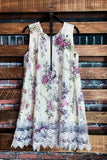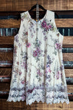 A LITTLE ENCHANTMENT ROSES LAYERED SLIP DRESS TUNIC IN BEIGE & FLORAL