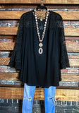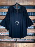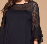 - Leopard Mesh Contrast Two Tier Bell Sleeves Fashion Top with Lace Neckline Adornment
