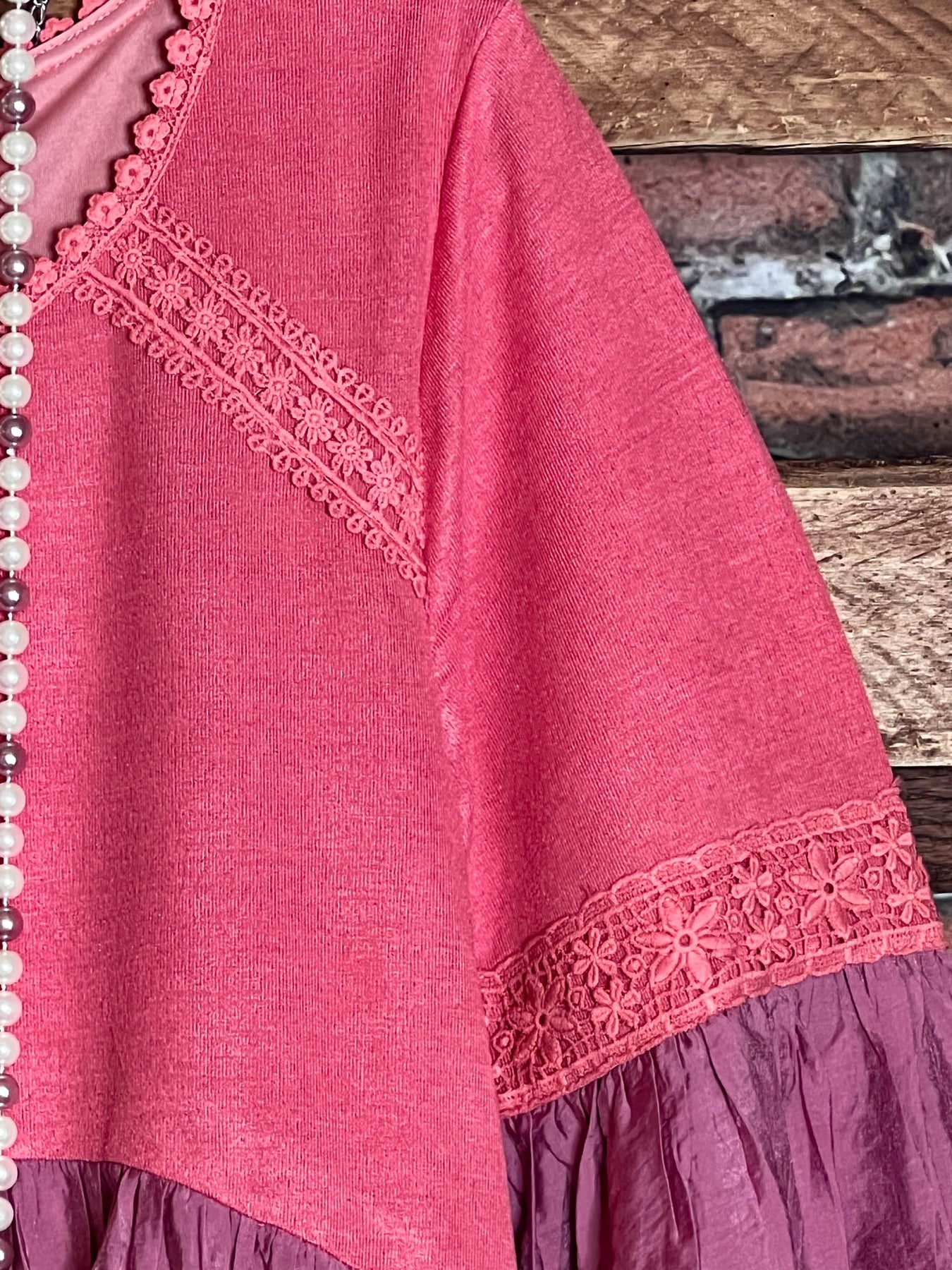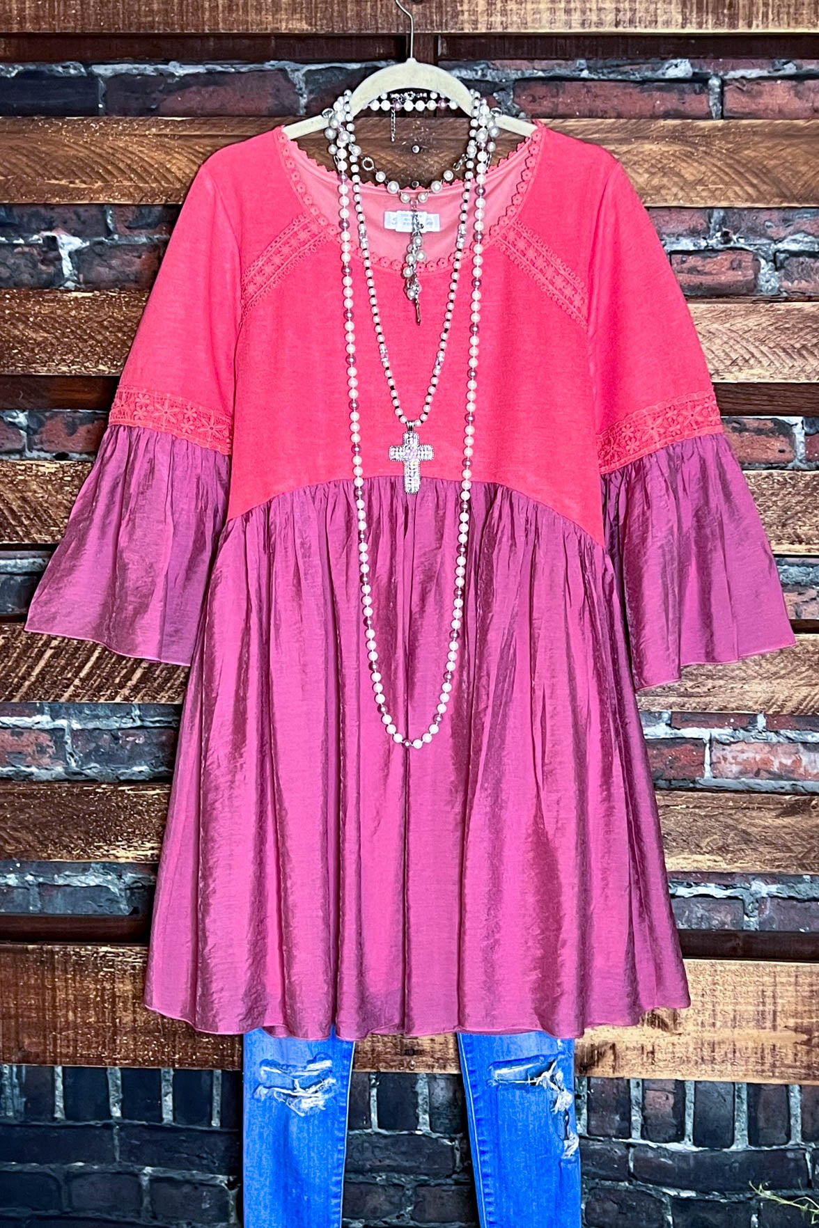 AS CUTE AS THEY COME CORAL & MAUVE TUNIC