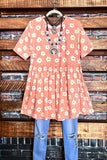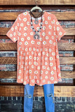 DAISY BLOOMS BABYDOLL TOP IN CORAL BLUSH & FLORAL