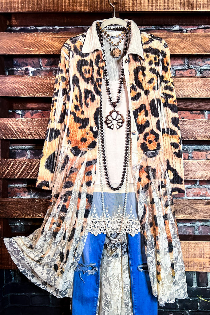 FABULOUS & STYLISH LEOPARD PRINT LACE LONG JACKET CARDIGAN