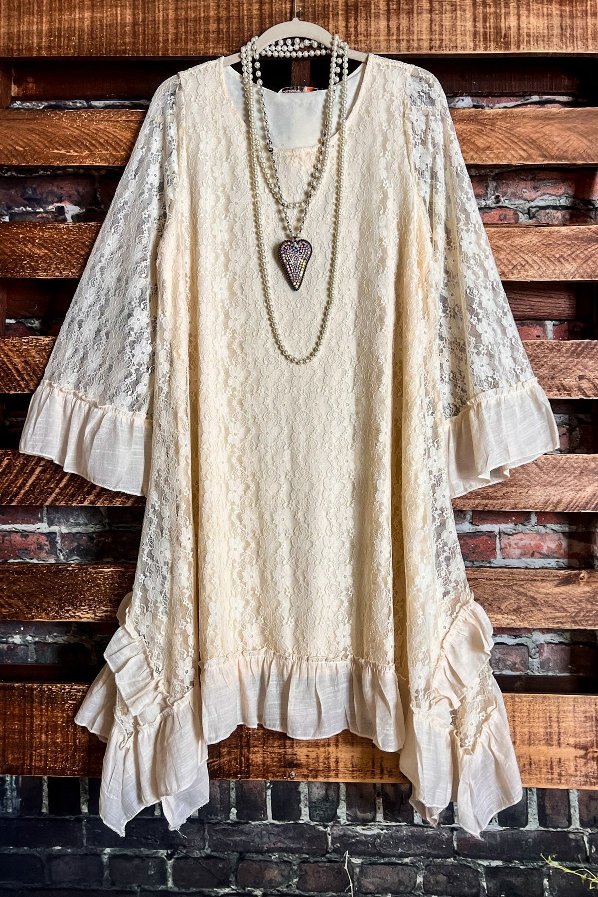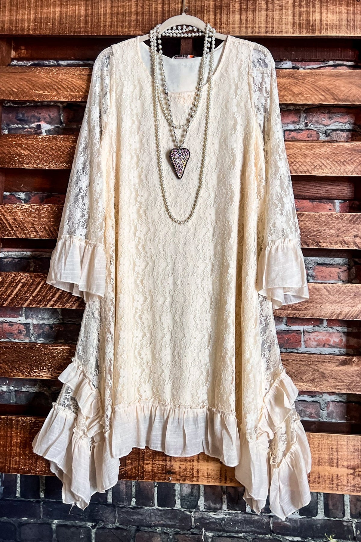 FARYTALE BEGINNINGS LACE DRESS IN BEIGE