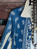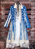 INDIGO MOON FAB PAISLEYS LACE CARDIGAN LONG JACKET BLUE ROYAL
