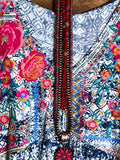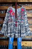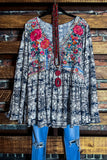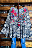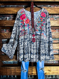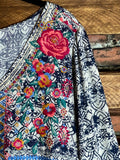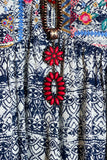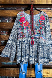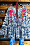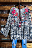 MORNING MUSE NAVY PRINT & IVORY EMBROIDERED TOP